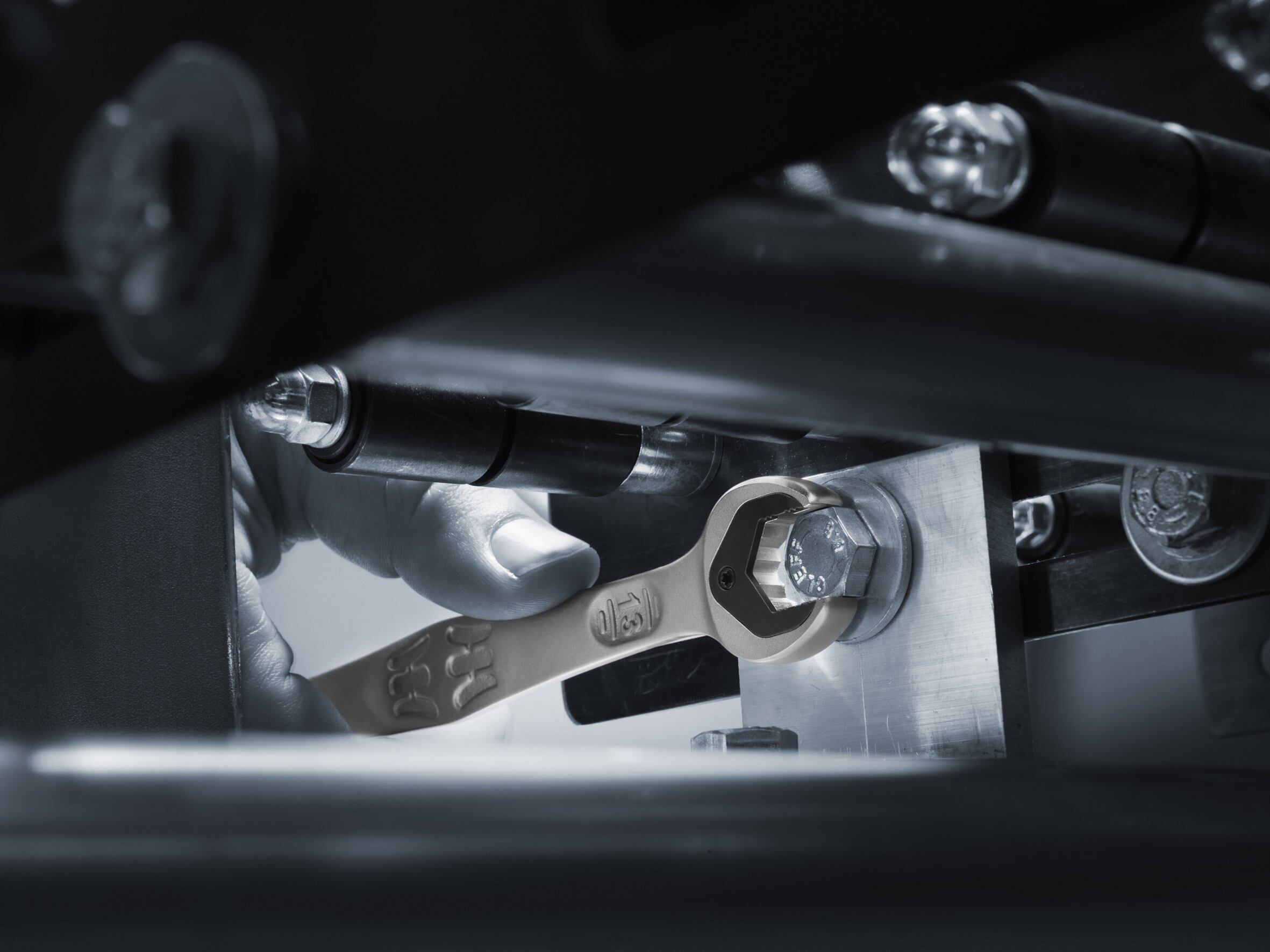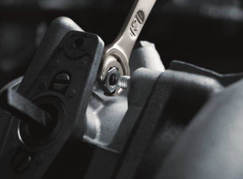●スパナ部分の特殊なプレート構造により、ナットやボルトが落ちることがないため、スパナでボルトをはさんだまま横向きで狭い箇所に挿入したり、上から力を入れて押さえながら、強いトルクでボルトを回すことができます。●スパナ部分の「ダブルヘックス」構造は、通常のスパナではまわすことができない、なめたり、サビたボルトをまわすことができます。●ギア部分は80枚でスムーズな動きを可能にしています。