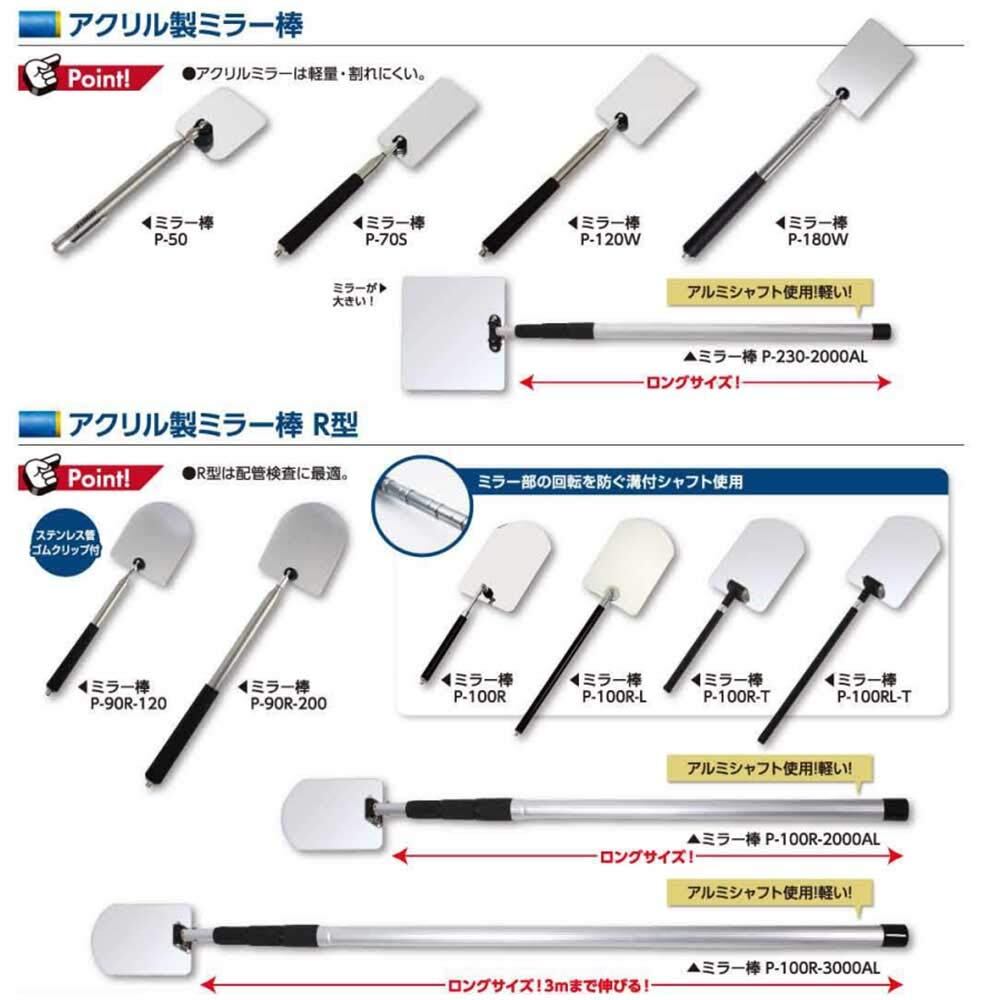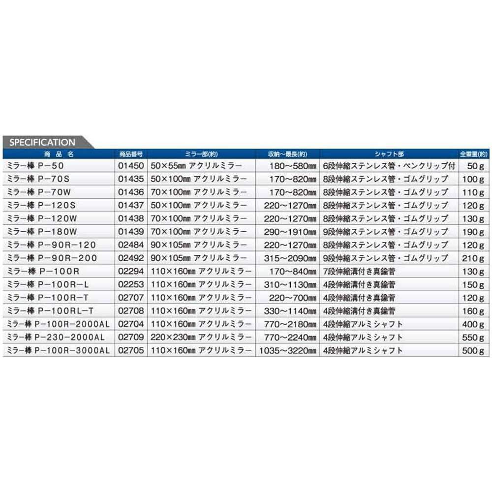 全長(mm):230~1180 ミラー寸法(mm):50×100 ミラー形状:四角型