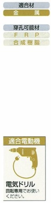 板厚4mmまでFRP、合成樹脂板などへの穴あけ作業に。