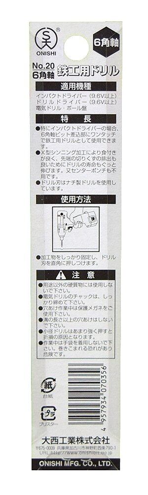 大西工業 6角軸鉄工用ドリル(NO.20) 3.5mm (金属・金工)