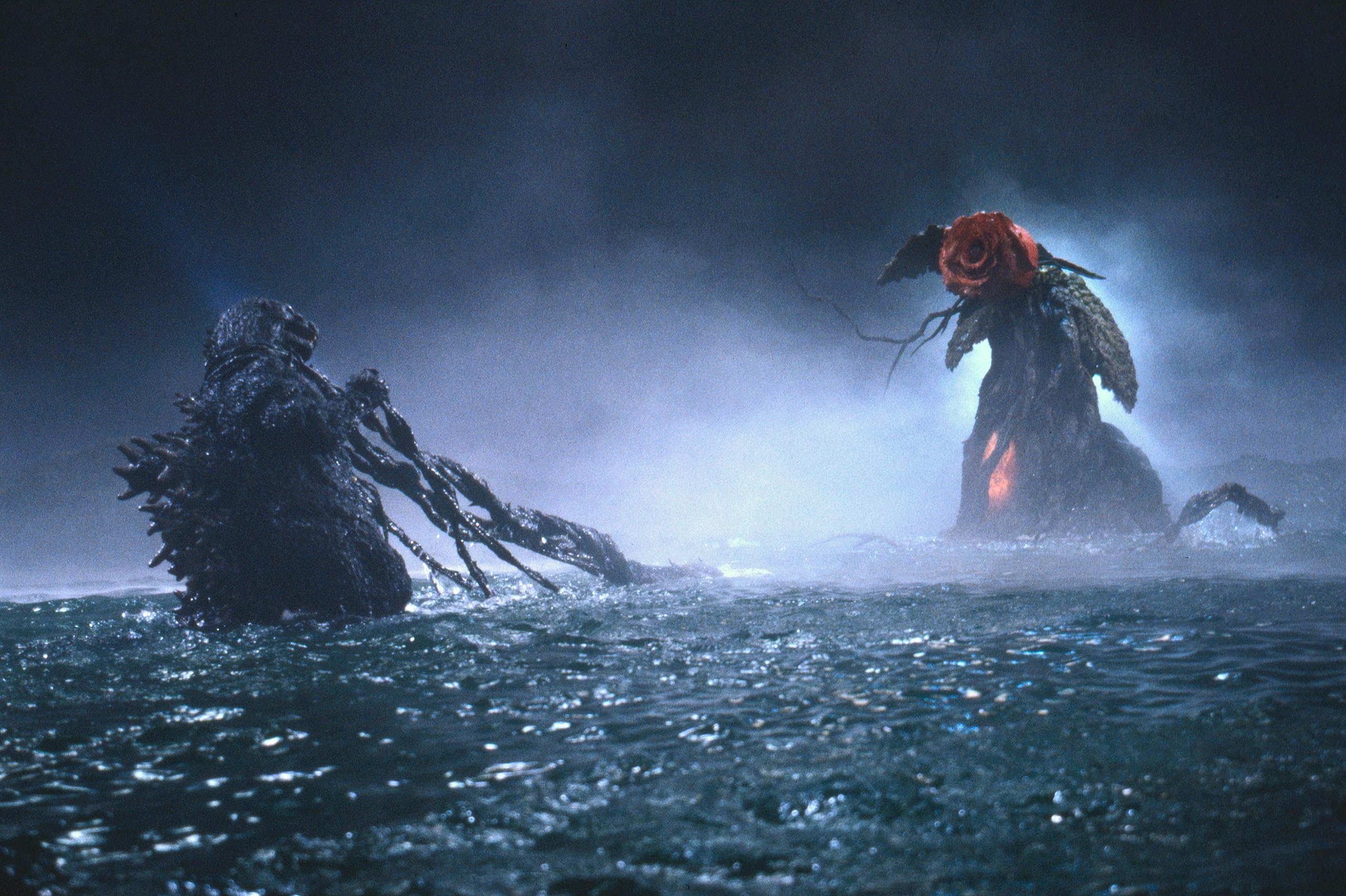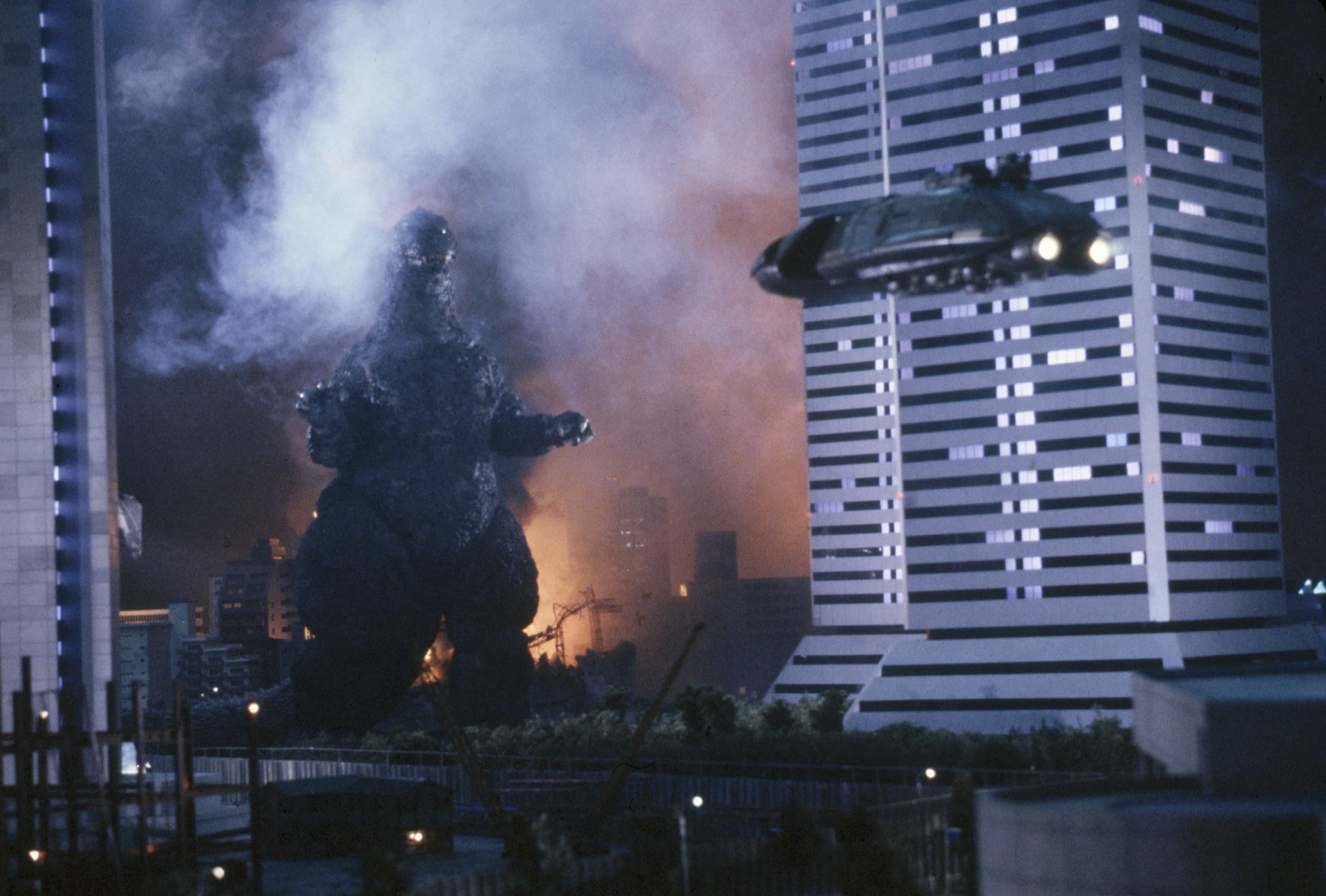全作のラストシーンから物語が始まる、VSゴジラシリーズの第1作。着ぐるみに加えて、上半身のみのゴジラが作られ、ワイヤーの操作で豊かな表情を見せている。