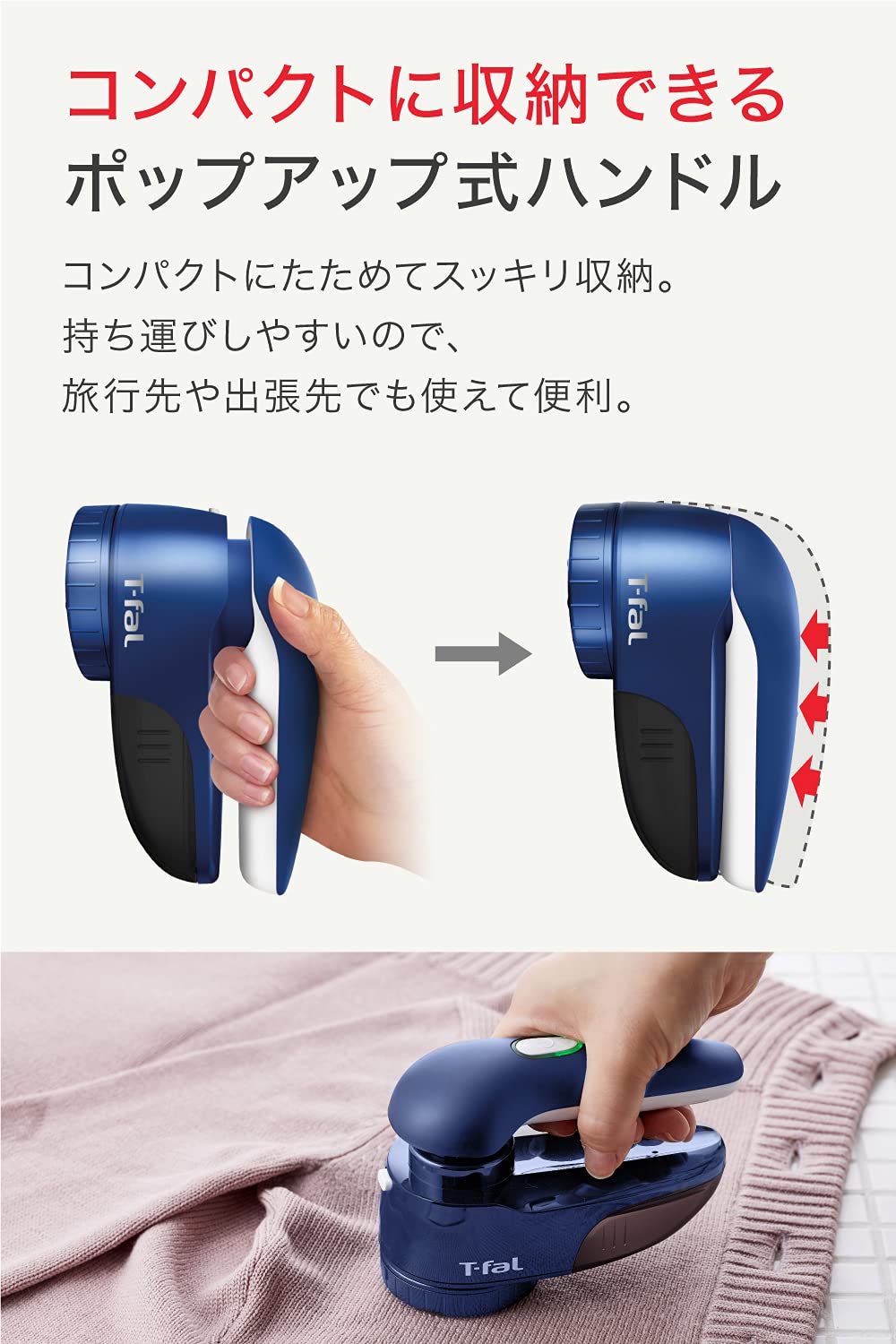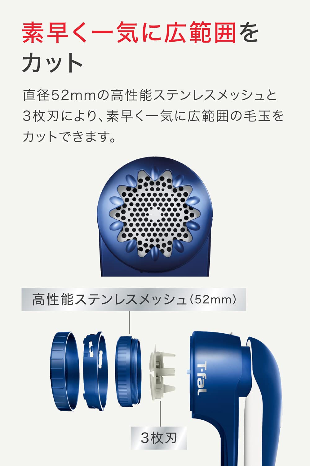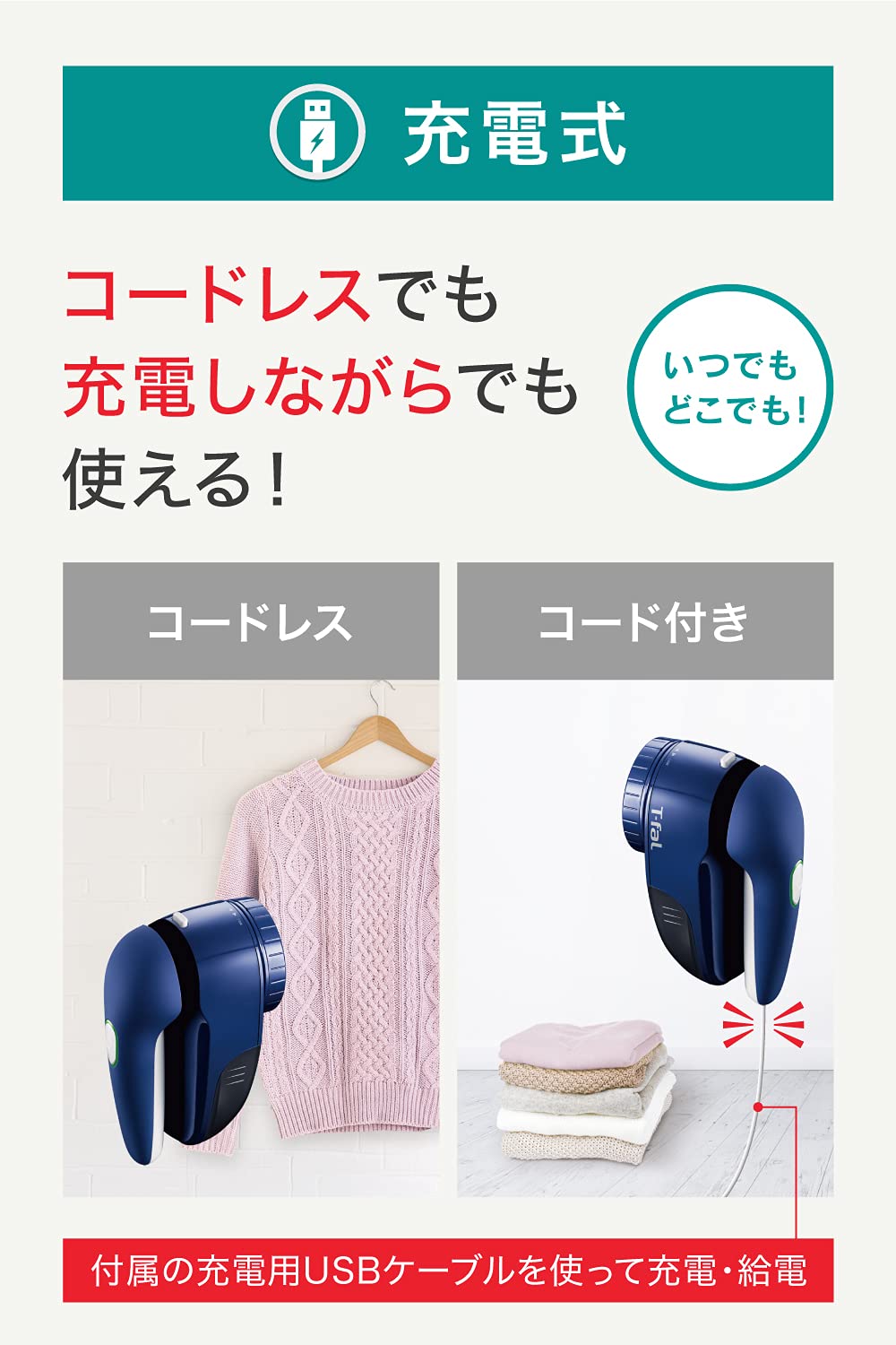 ティファール 毛玉取り器 充電式 コードレス/コード付き 「充電式毛玉クリーナー」 3枚刃 風合いガード 電動 ネイビー JB7001J0
