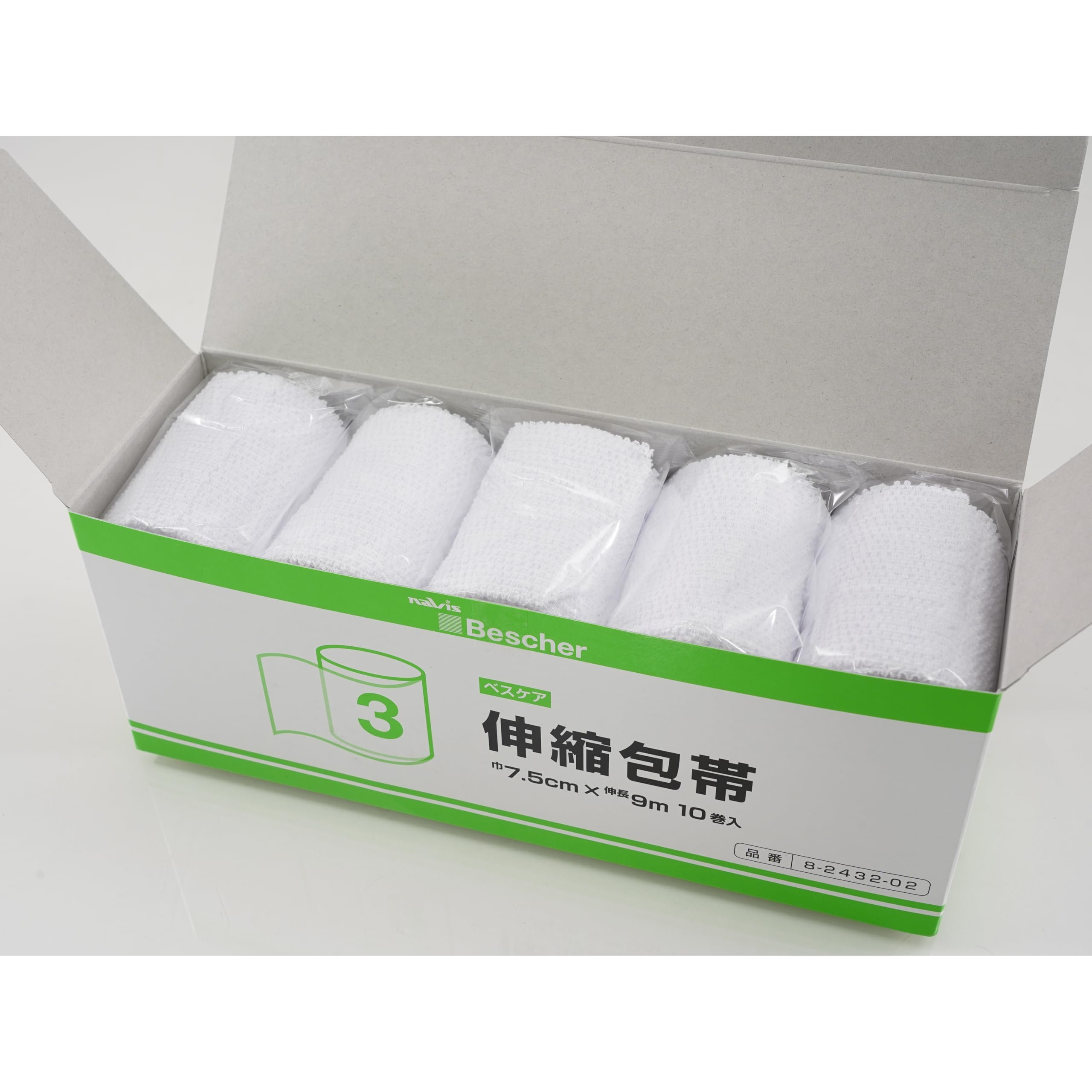 アズワン ナビス 伸縮 包帯 3号(75mm×9m) 10巻入 腕 足 レーヨン 通気性 個包装 8-2432-02
