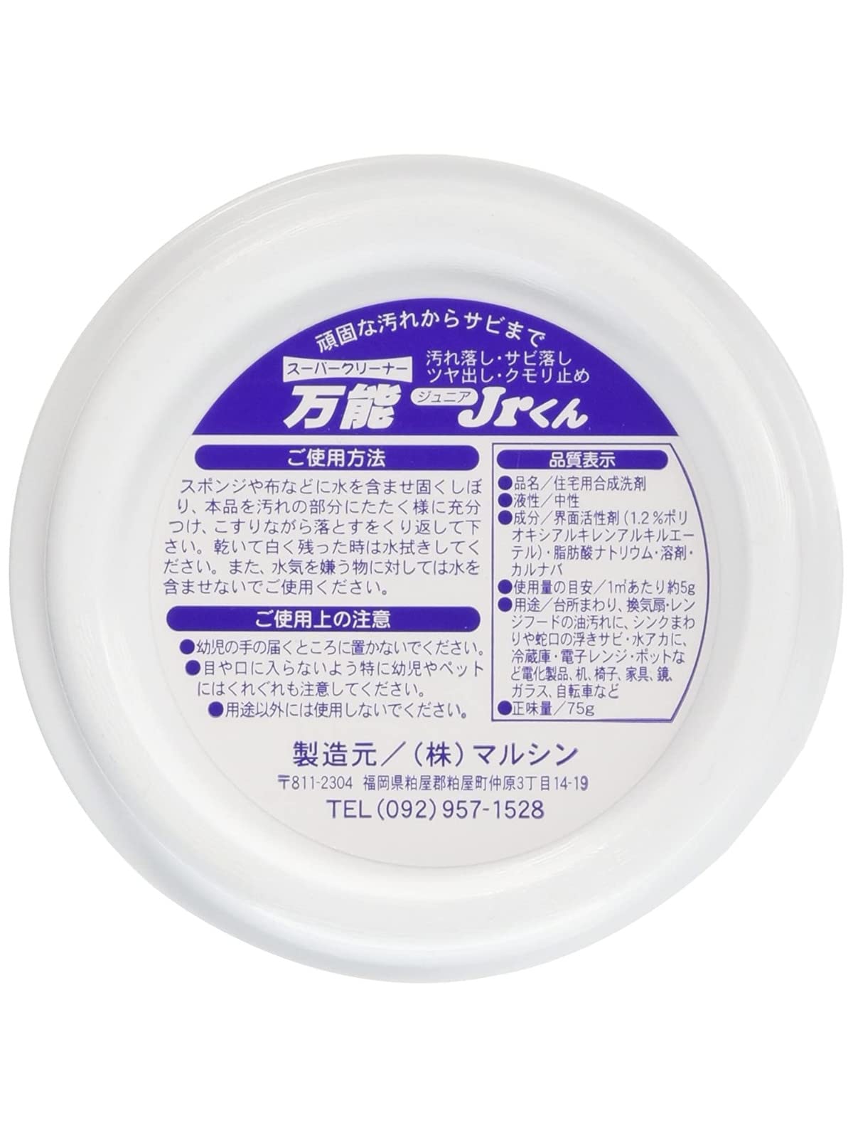 マルシン 万能クリーナー 75g スポンジ付き スーパークリーナー 万能Jrくん 中性タイプ 研磨剤・臭い無し 業務用 日本製