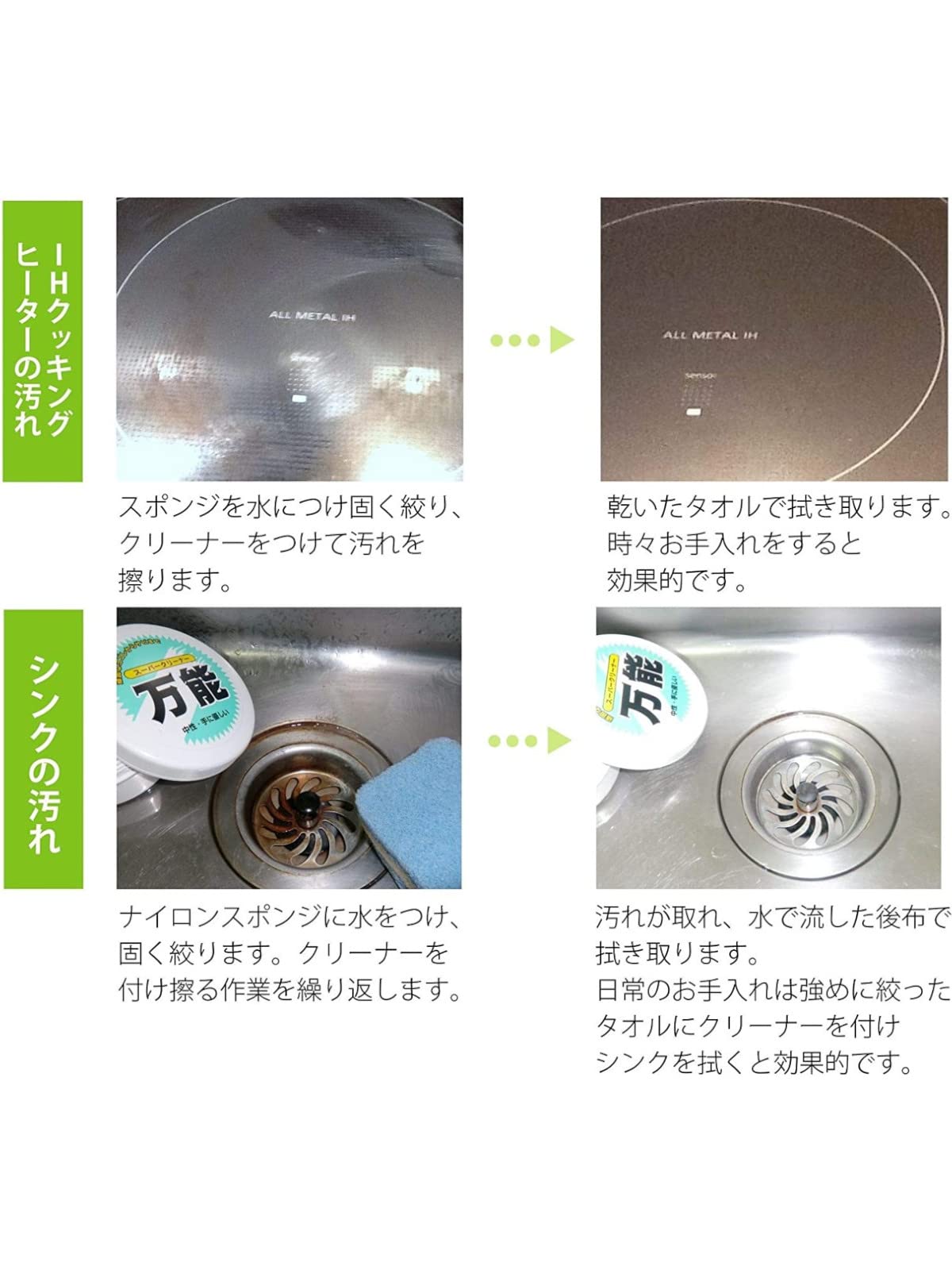 ●家具のお手入れ、キッチンの油汚れ、布製品のシミ抜き、マジックやクレヨンの汚れ落とし、自転車やベビーカーのさび止め・さび落としなど、使い道が豊富な万能クリーナーです。