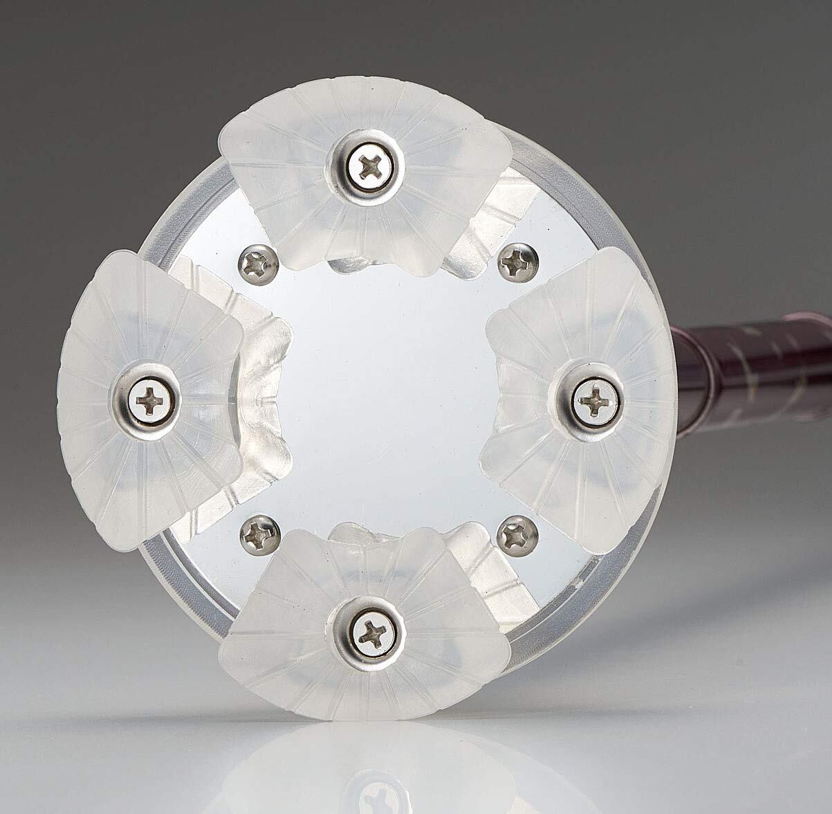 地面に合わせて根元が自在に動いて安定。接地面が広いので安定し、滑りにくい。