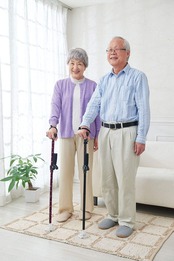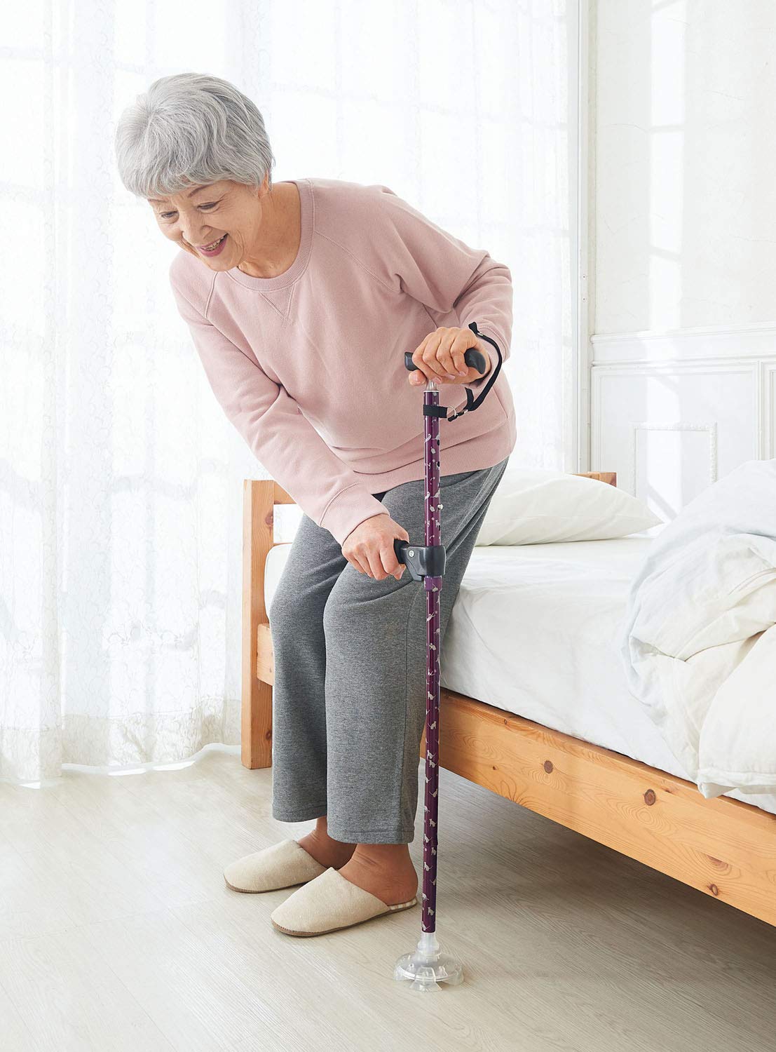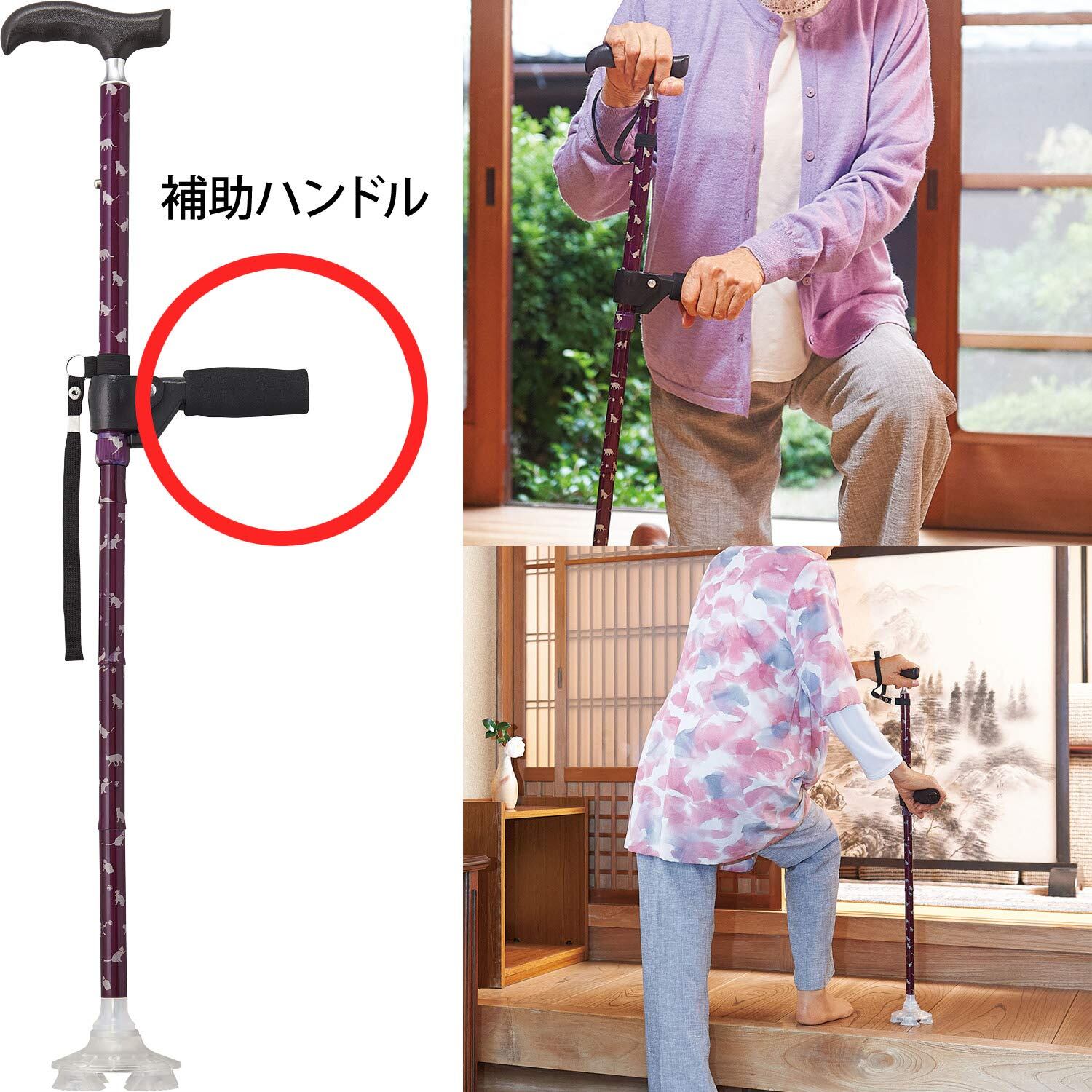 補助ハンドル付きの杖で毎日の生活をサポート。室内用の杖。