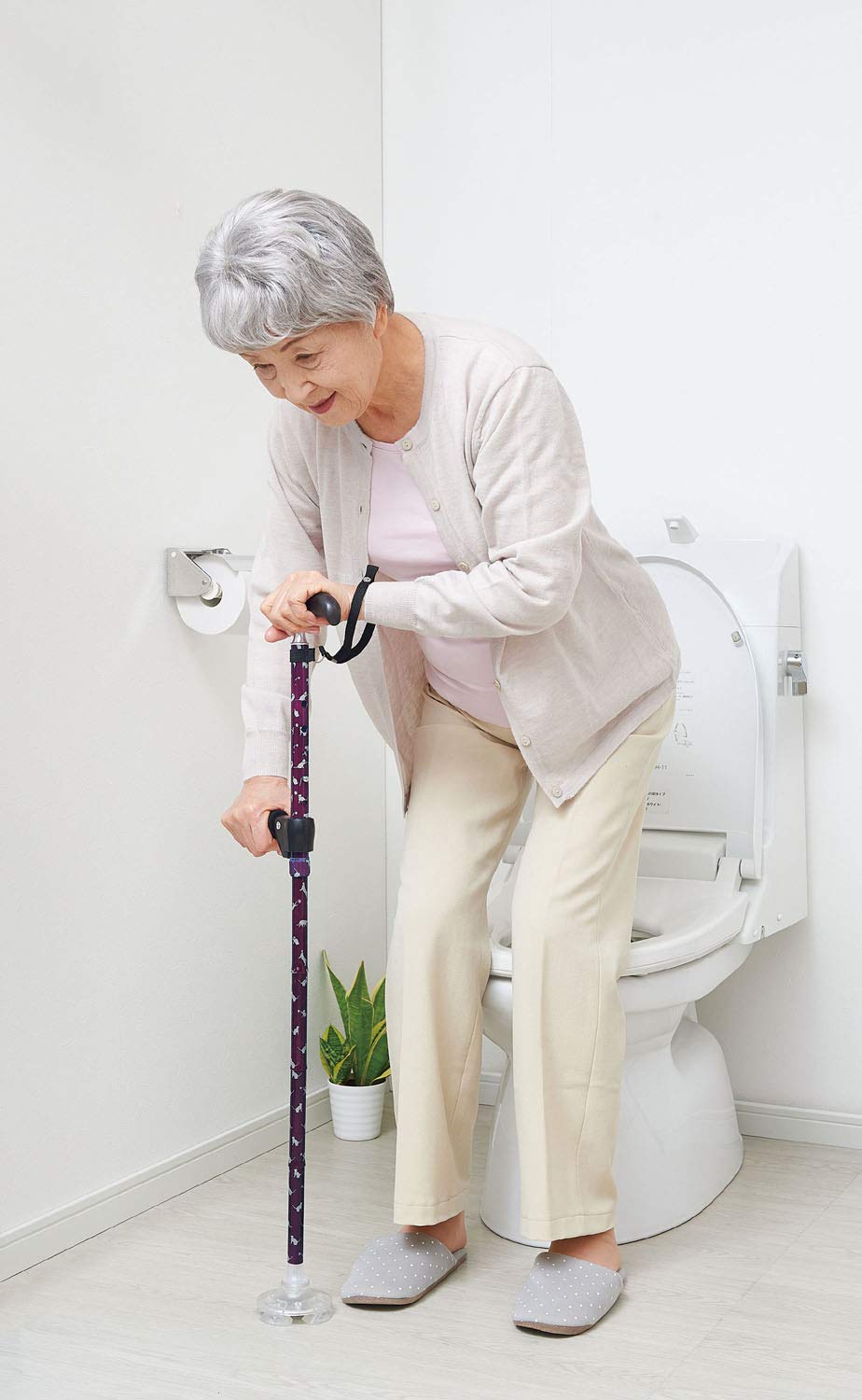 コジット 室内用 お助け杖 婦人用 78.5~90.5cm 立ち座り 補助ハンドル付