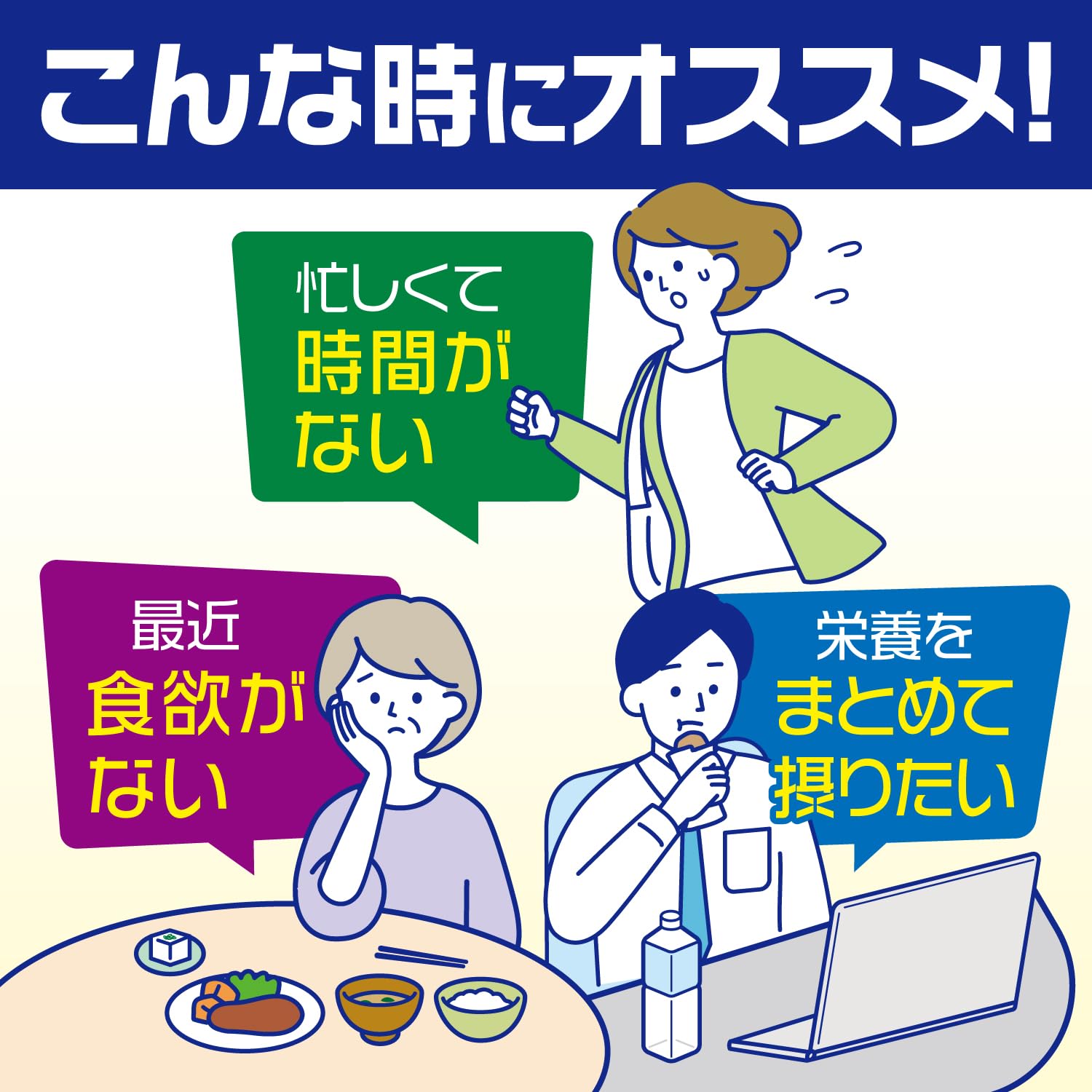 ●食事の量が減ってきた方や食欲がわかない方、手軽にきちんと栄養補給をしたい方にオススメ。