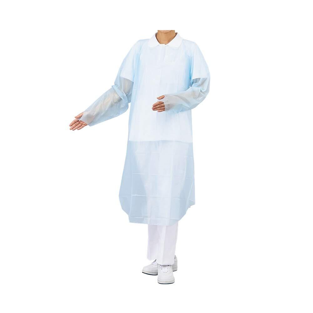 ナビス プロシェアPEエプロン 袖つき 使い捨て 袖口親指フック ブルー 30枚入 / 7-6264-02
