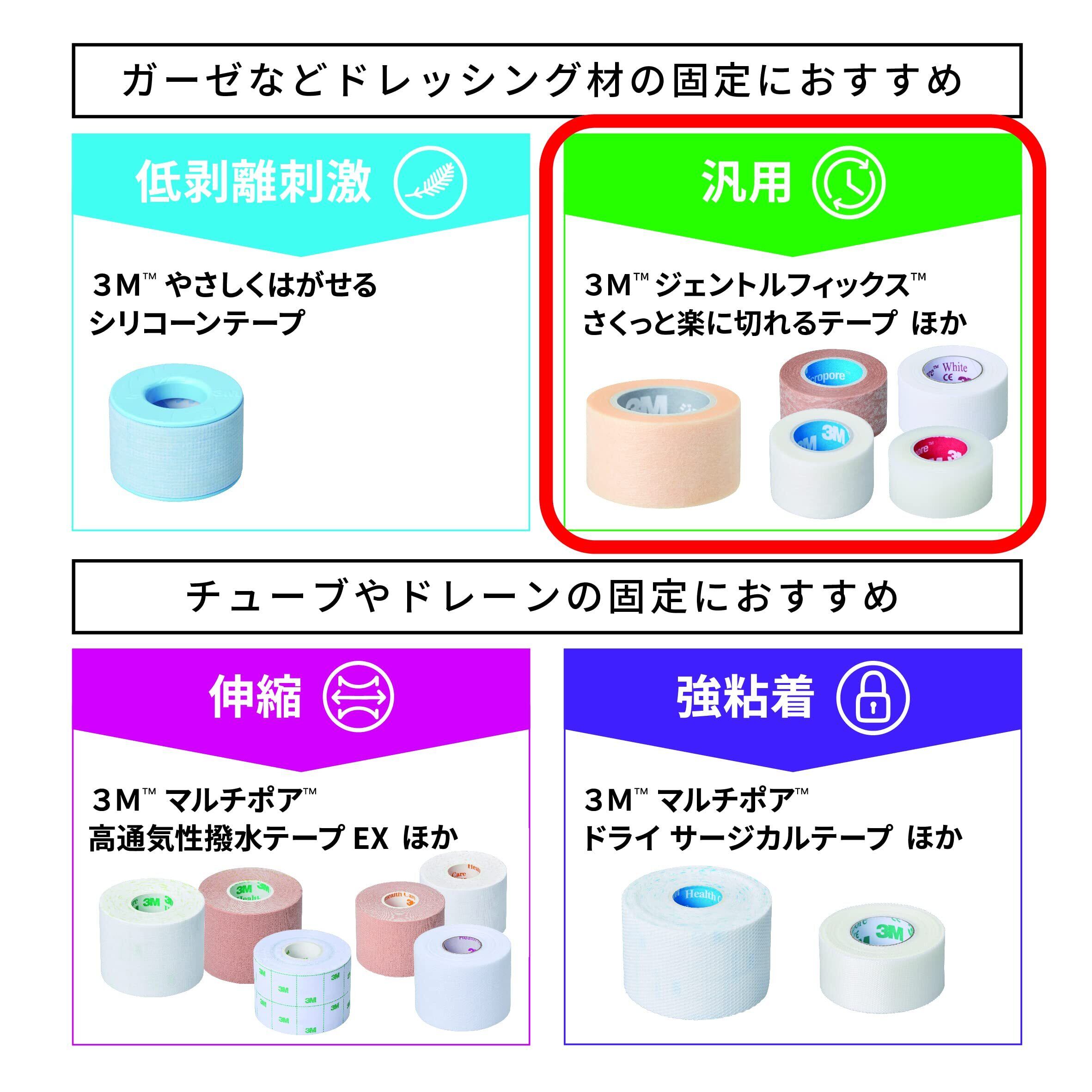 中程度の粘着力です。湿った皮膚によくつく粘着材です。