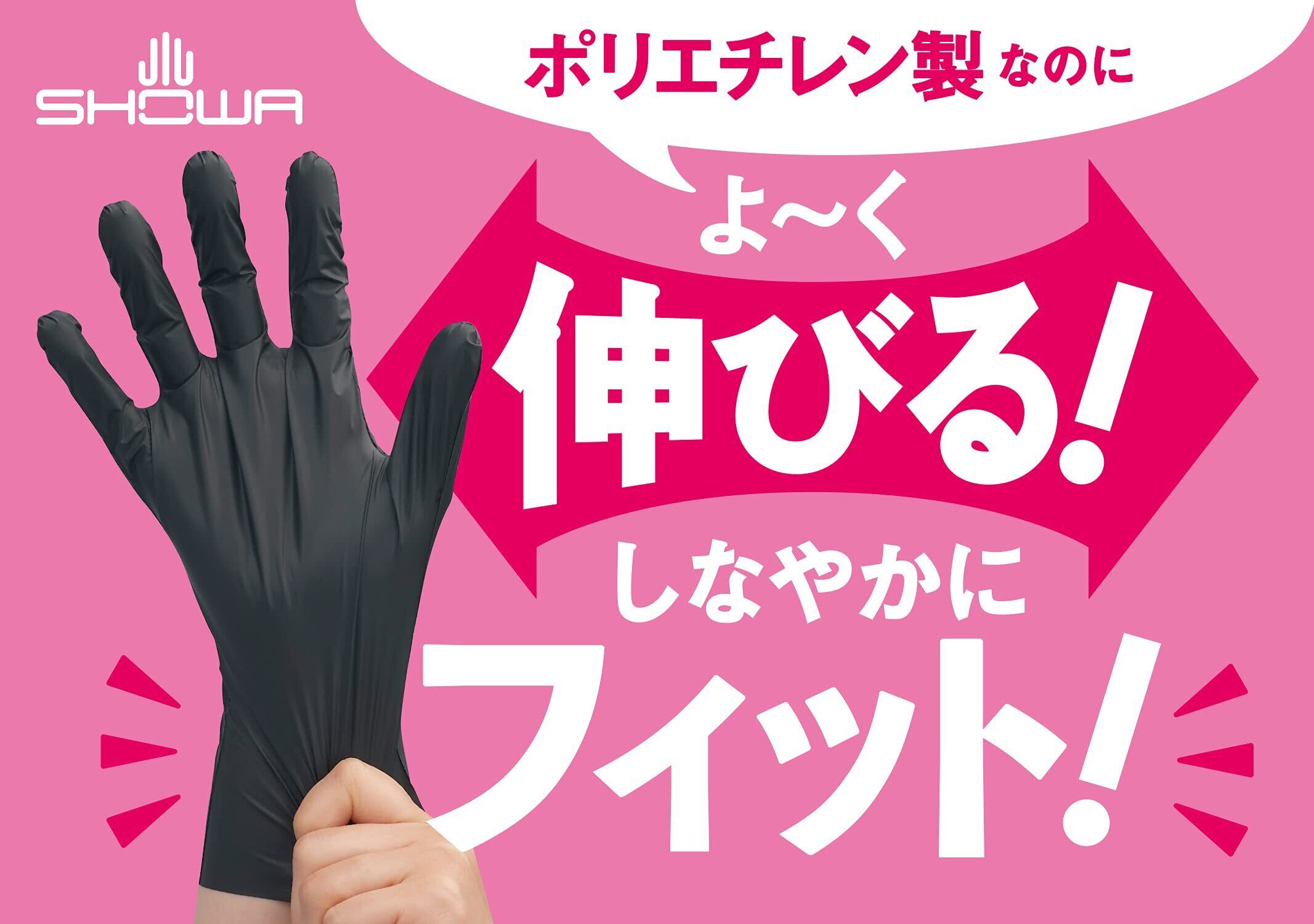 ● 従来のポリエチレン製手袋に比べ伸びが良く、しなやかに手にフィットします。