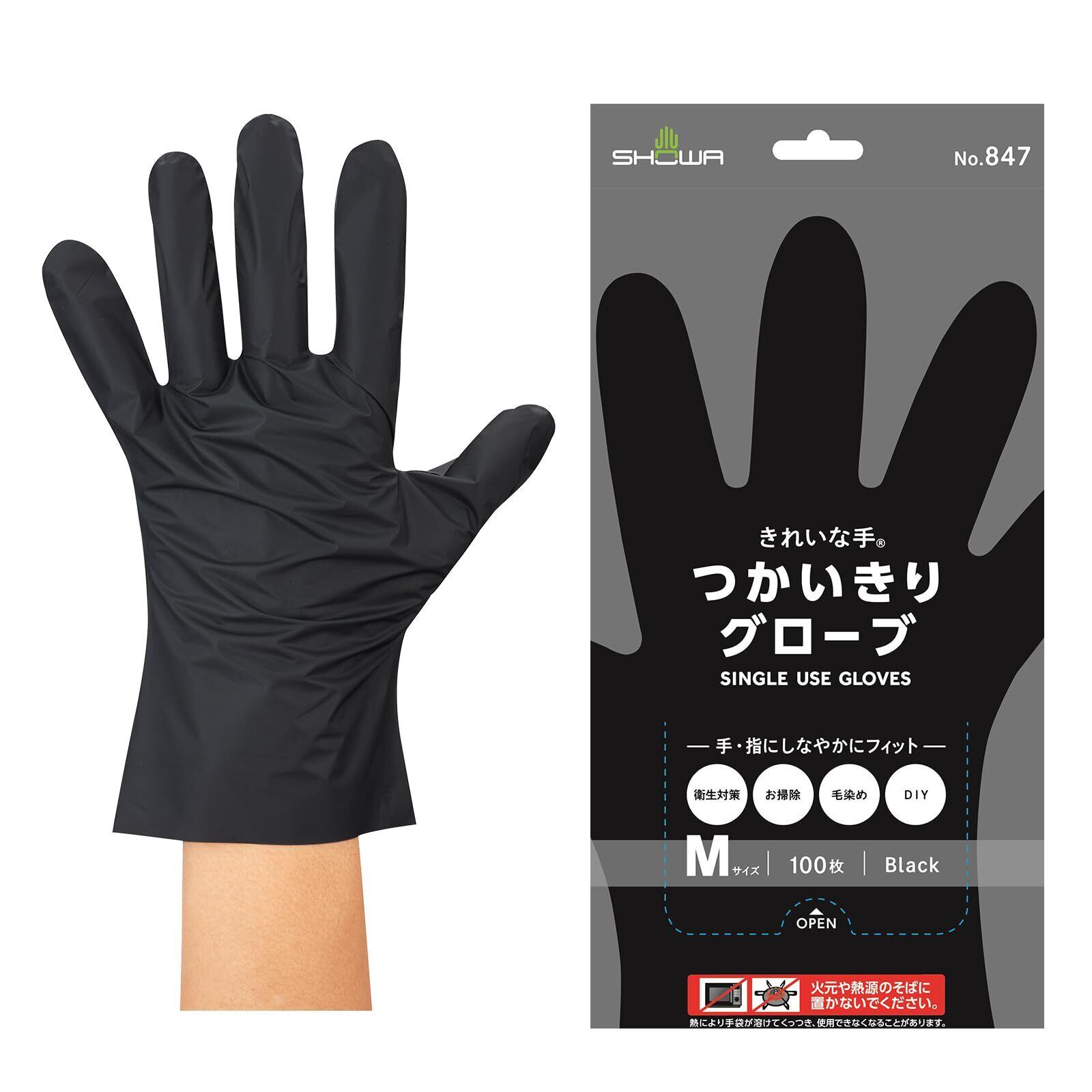 ショーワグローブ 【使い捨て手袋】 No.847 きれいな手 つかいきりグローブ 100枚入 ブラック Mサイズ 1函