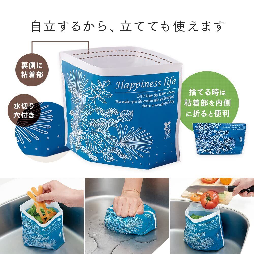 勉強机に、玄関に、作業台に、化粧台にとペタッと張るだけで欲しい場所にゴミ袋! 穴開きタイプで水が切れる! 自立するので立てても使えて、捨てる時は粘着部を内側に折ることで口を閉じてポイッっと捨てれます。バイオマスとは植物由来の原料です。本品にバイオマスを25%配合した環境に配慮した商品です。※地域によりゴミの分別が異なりますので自治体のルールに従ってください。