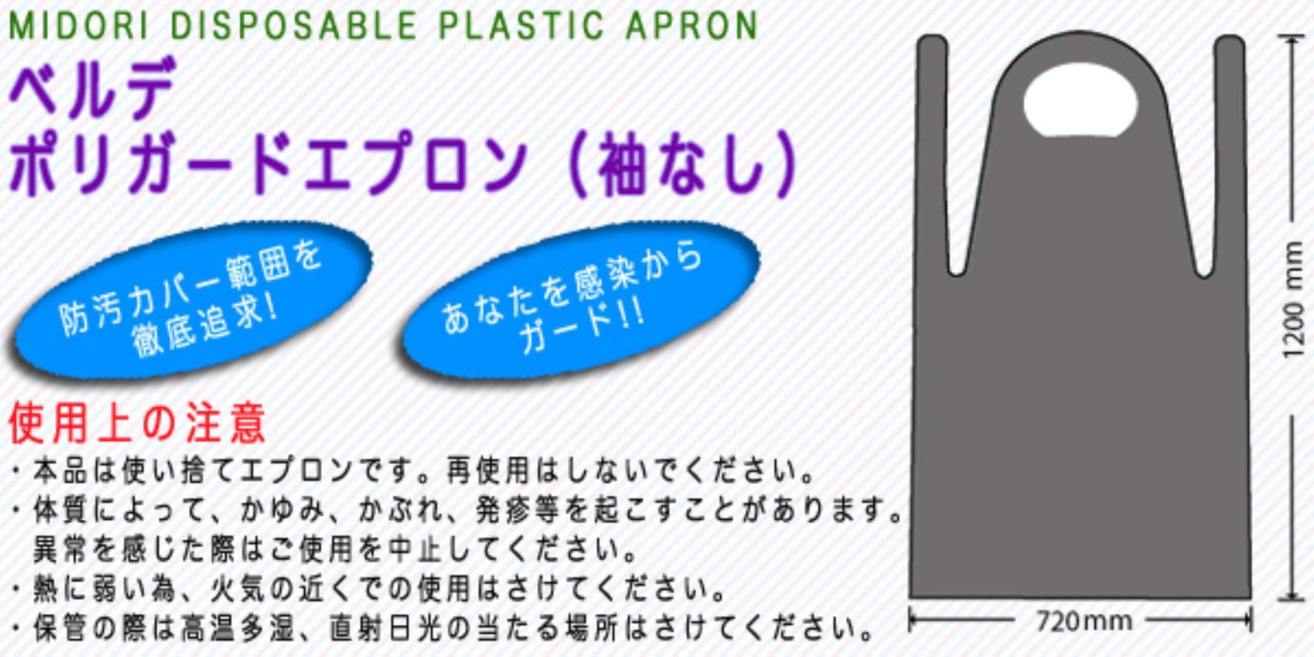 [特徴]●防水性に優れたポリエチレン製フィルム使用 ●肩口・襟ぐりのカバー範囲を最大限に広げ汚れからガード。 ●収納性が便利な箱入りタイプ ●3色のカラー展開で用途により使い分け可能!