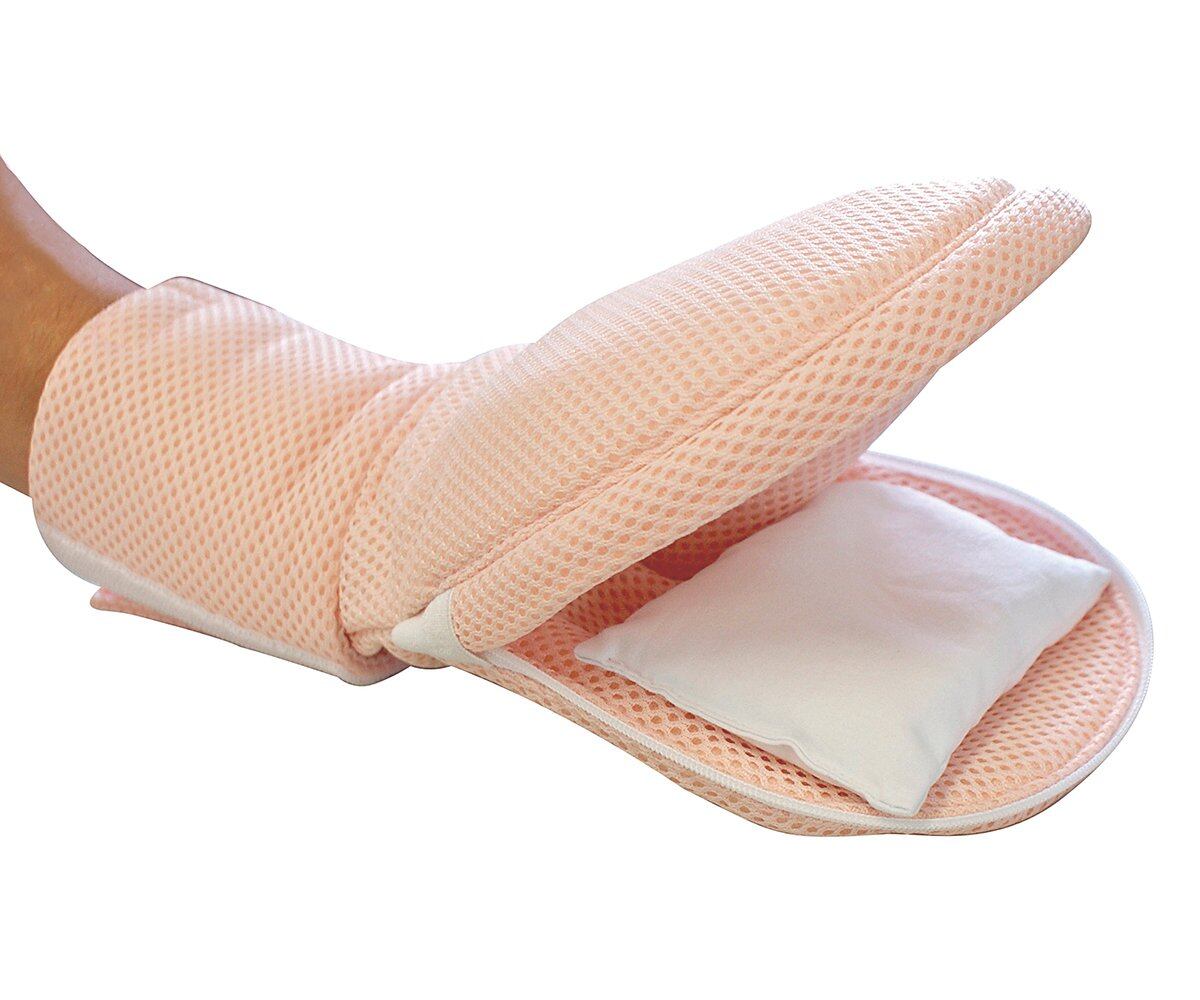 掌部分にビーズパッド(別売:お茶パック)が入っていますので、物を掴むことができず、抜去行為を防ぎます。