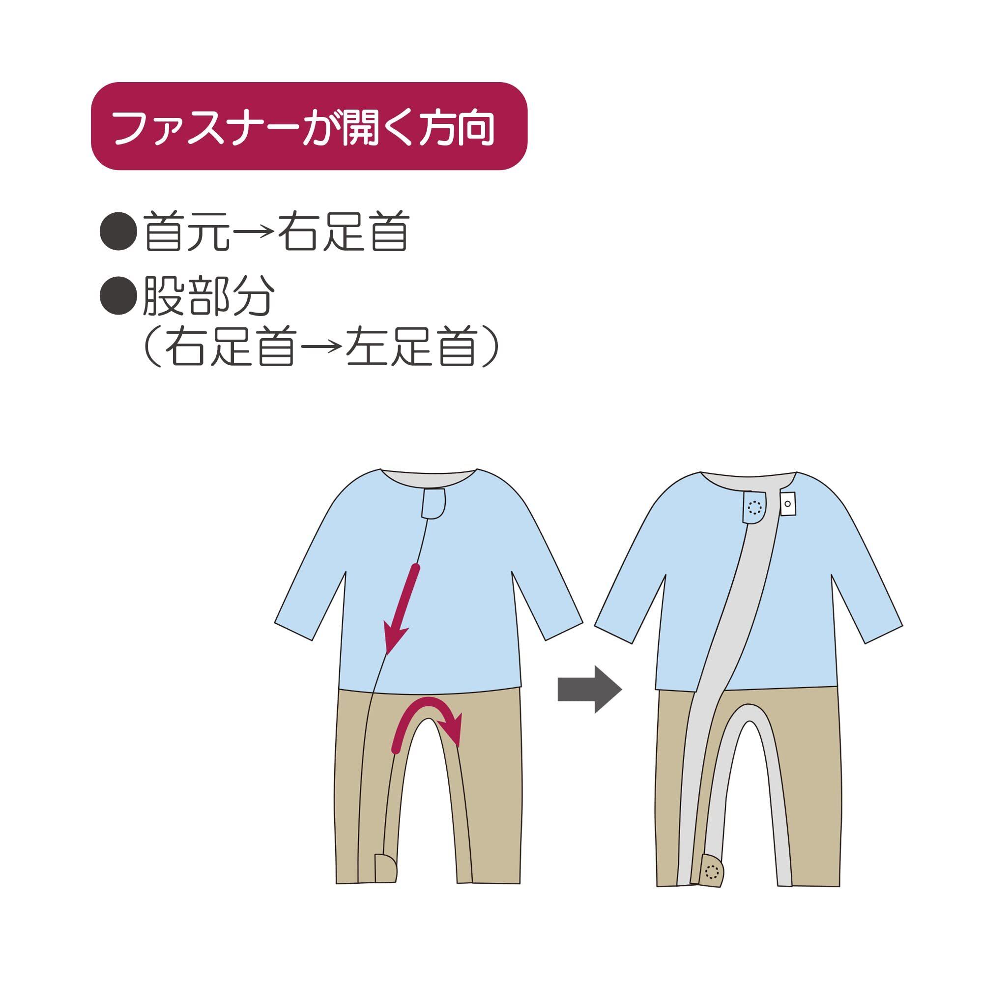 ・おむつ交換がしやすいように股ファスナーを配置。