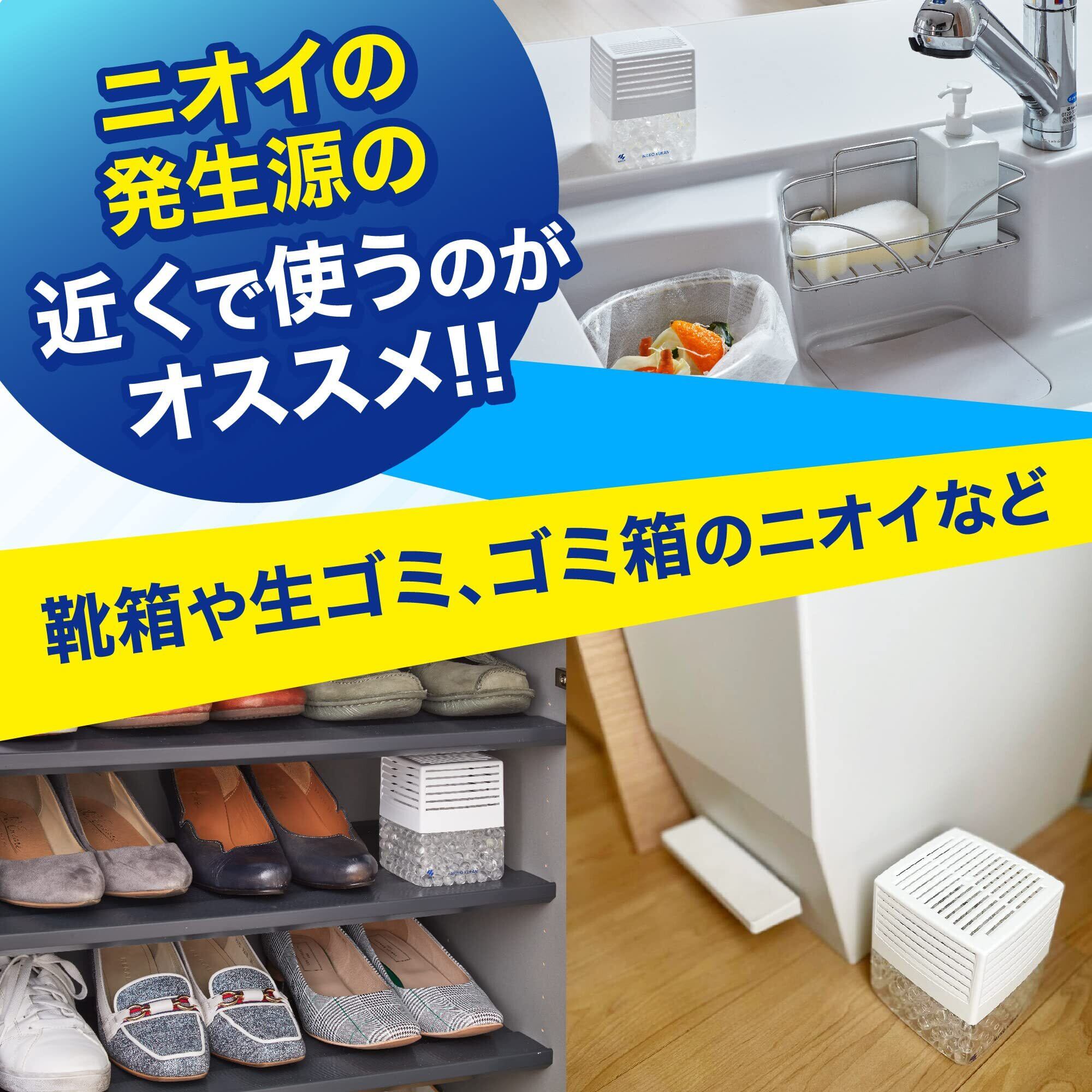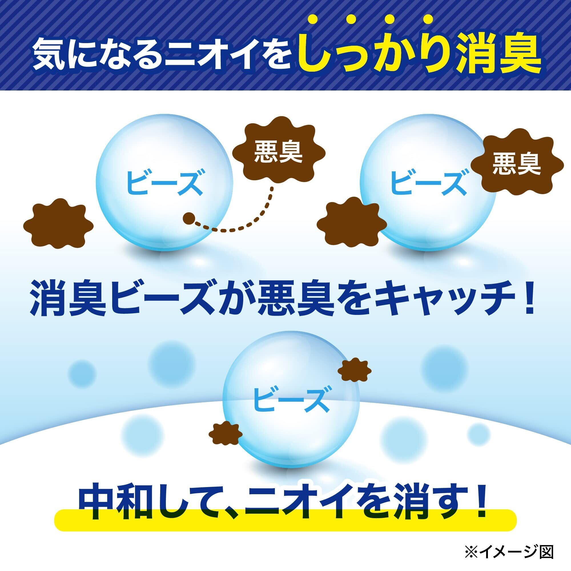 【消臭ビーズが気になるニオイを吸収】アミノ酸系消臭剤が尿のニオイ(アンモニア)や生ごみのニオイ(硫化水素)、汗のニオイ(酢酸)などの悪臭成分と結合し、中和することでニオイを消臭。「靴箱やキッチン、ゴミ箱」など気になる暮らしのニオイを家中まるごと消臭!
