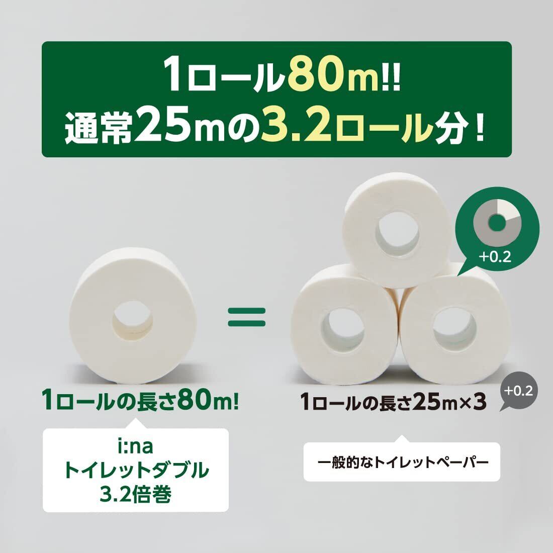 エリエール トイレットペーパー i:na(イーナ) 3.2倍巻き 80m×64ロール (8ロール×8パック) ダブル パルプ100% 華やかなフローラルの香り【ケース販売】
