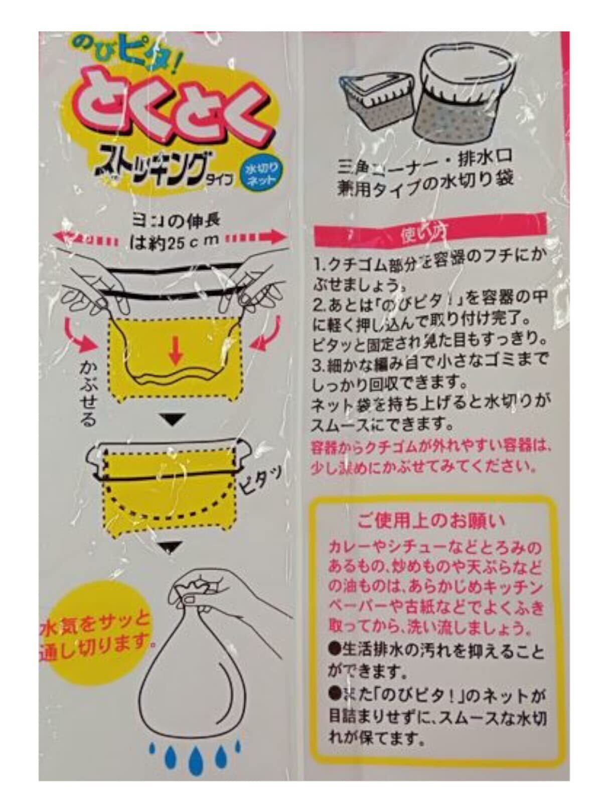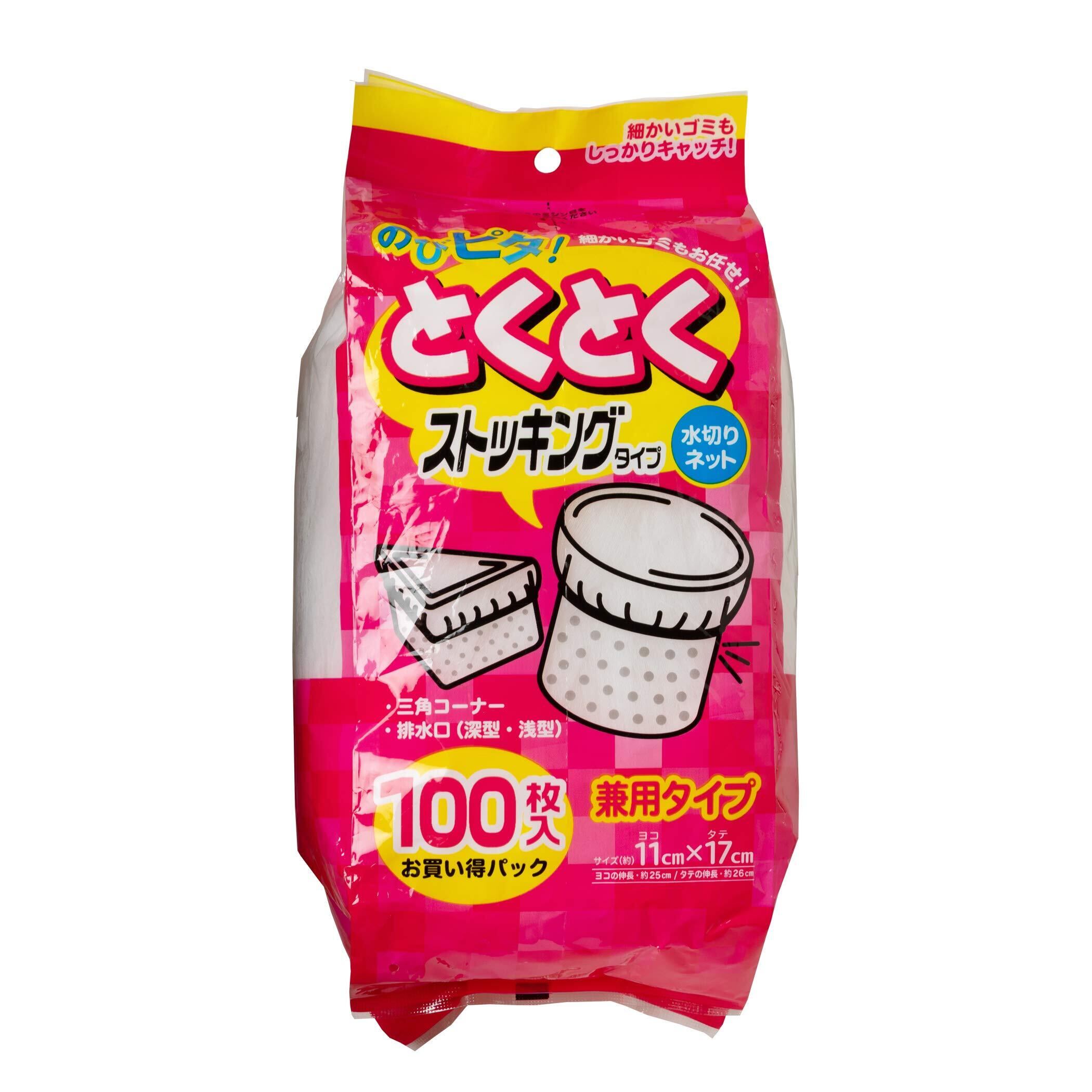 ケミカルジャパン 水切りネット 兼用 ストッキングタイプ 伸長時の長さ 横約25cm 縦約26cm 100枚 のびピタ 細かいゴミもしっかりキャッチ NSK-100