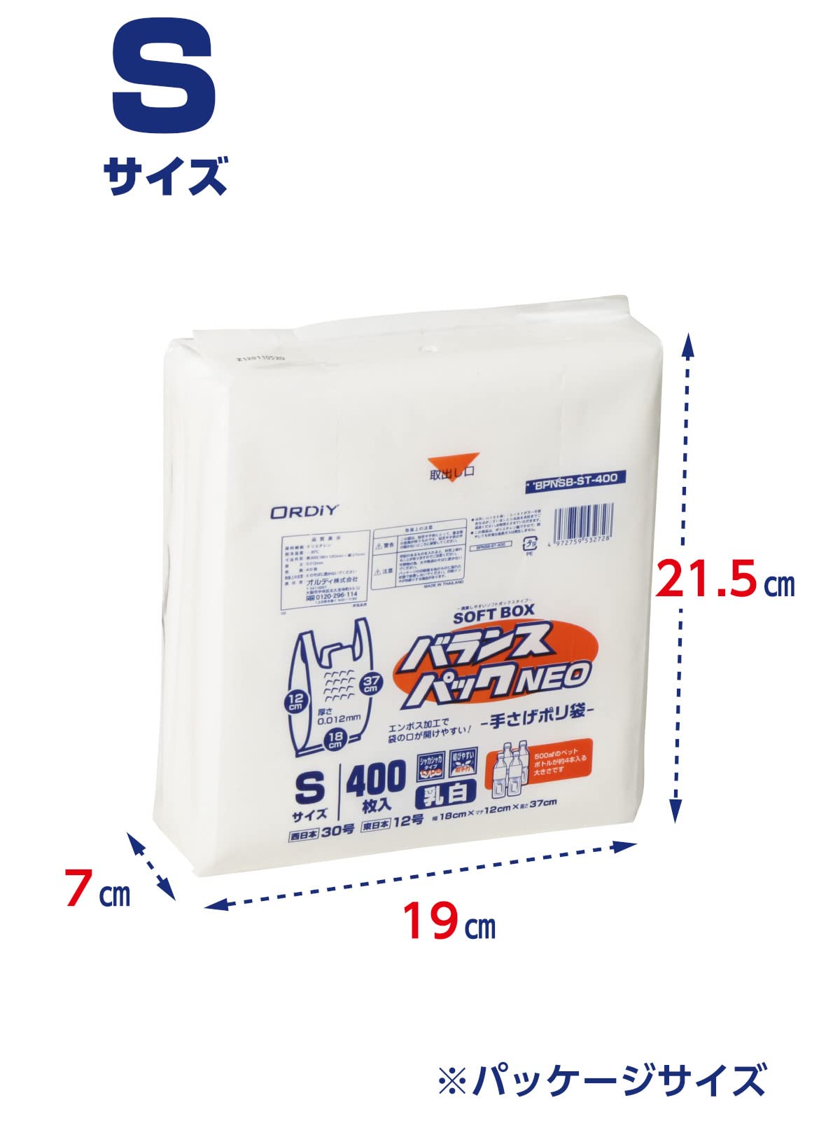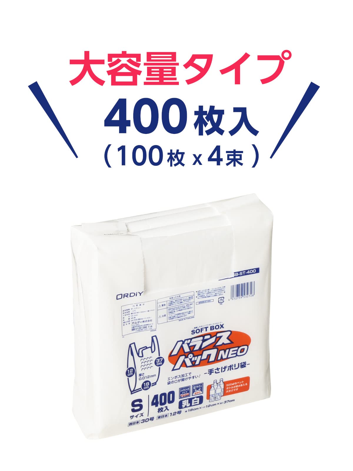 オルディ レジ袋 S 30号 乳白 400枚入 ソフトなBOXタイプ 1枚ずつ取り出せる 取っ手付きポリ袋 バランスパックネオ SOFTBOX
