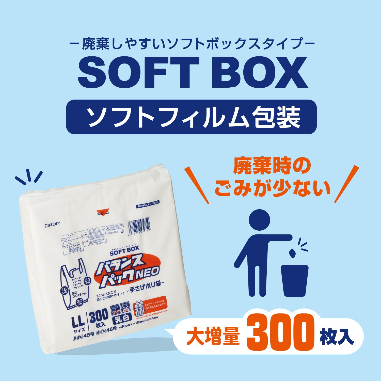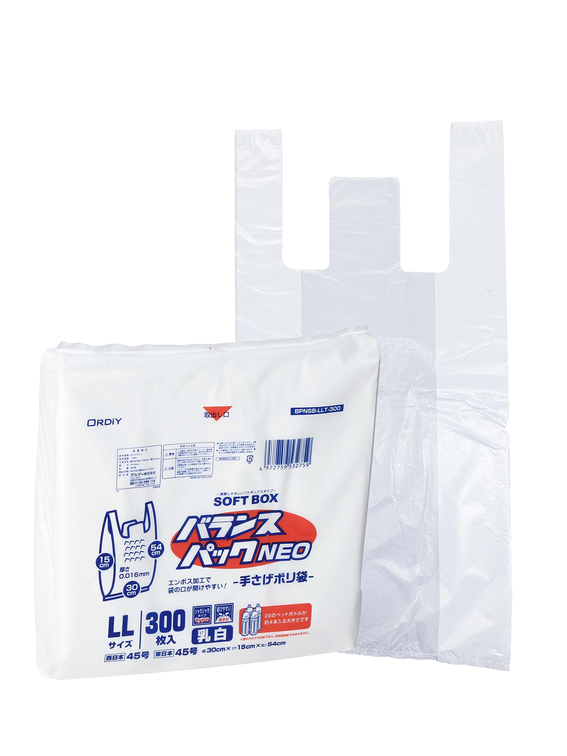 【最新特価】オルディ レジ袋 LL 45号 乳白 300枚入 ソフトなBOXタイプ 1枚ずつ取り出せる 取っ手付きポリ袋 バランスパックネオ SOFTBOX