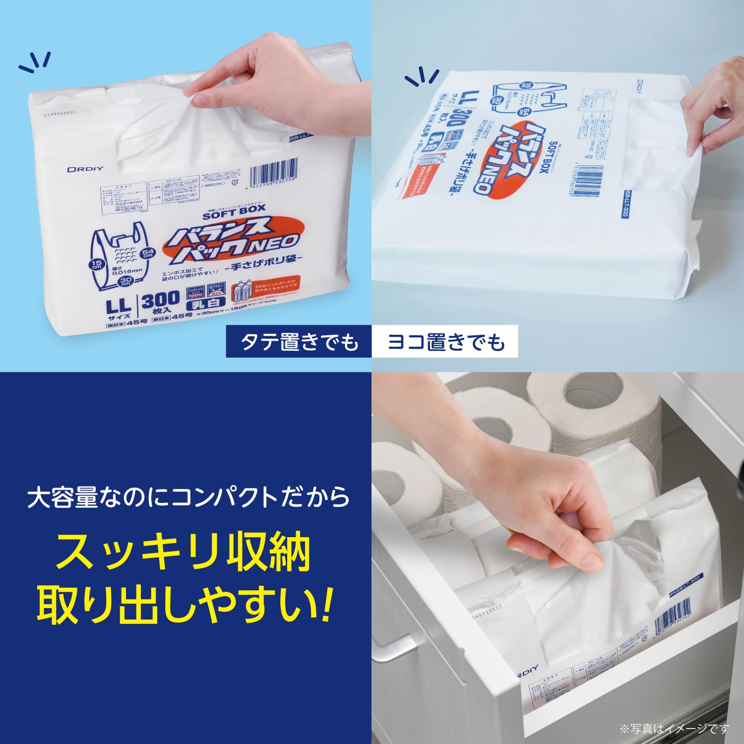 オルディ レジ袋 LL 45号 乳白 300枚入 ソフトなBOXタイプ 1枚ずつ取り出せる 取っ手付きポリ袋 バランスパックネオ SOFTBOX