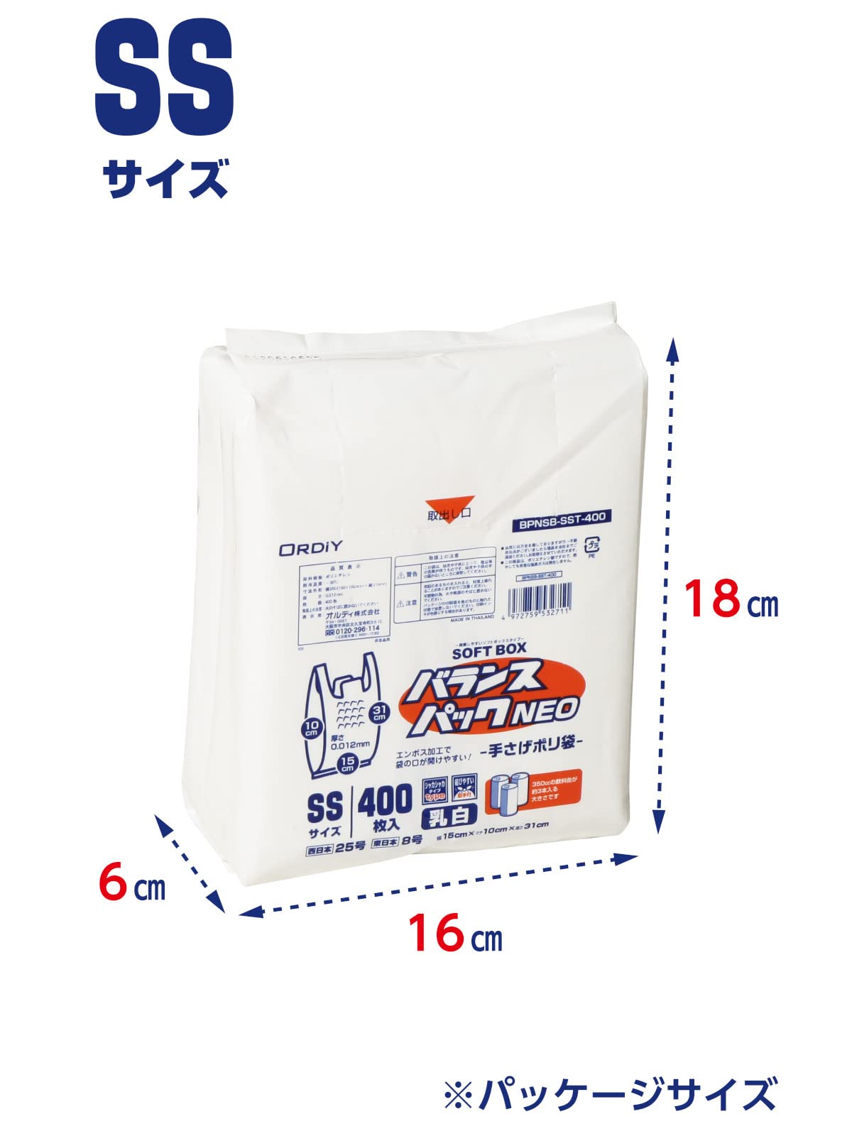 オルディ レジ袋 SS 25号 乳白 400枚入 ソフトなBOXタイプ 1枚ずつ取り出せる 取っ手付きポリ袋 バランスパックネオ SOFTBOX