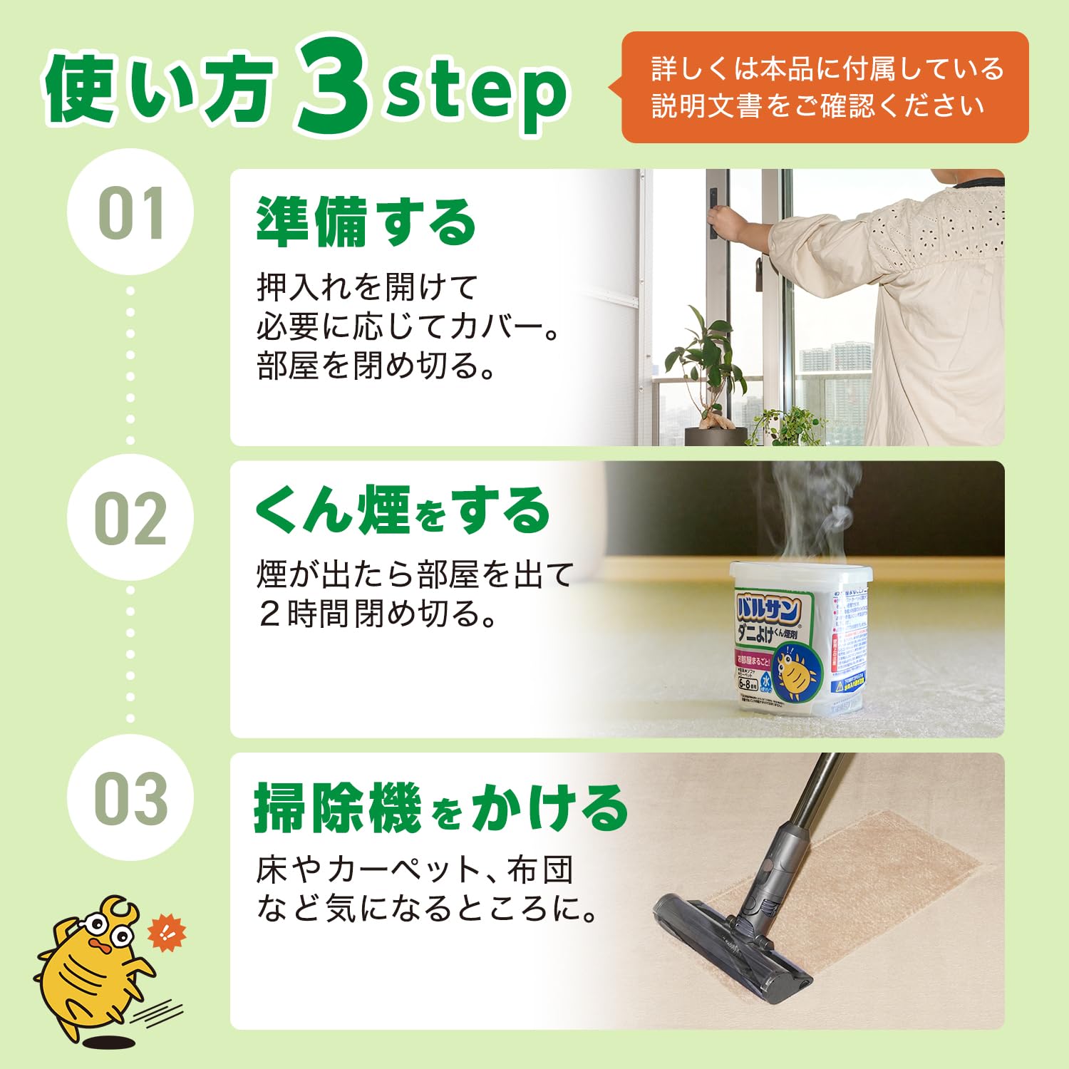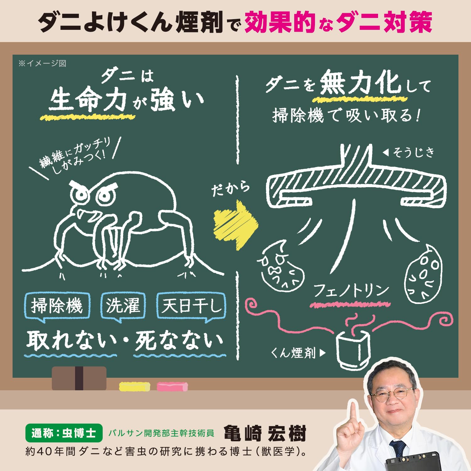 ●お部屋まるごとダニ対策ができるくん煙剤です。植物・精密機器へのカバー不要のラクラクタイプです。