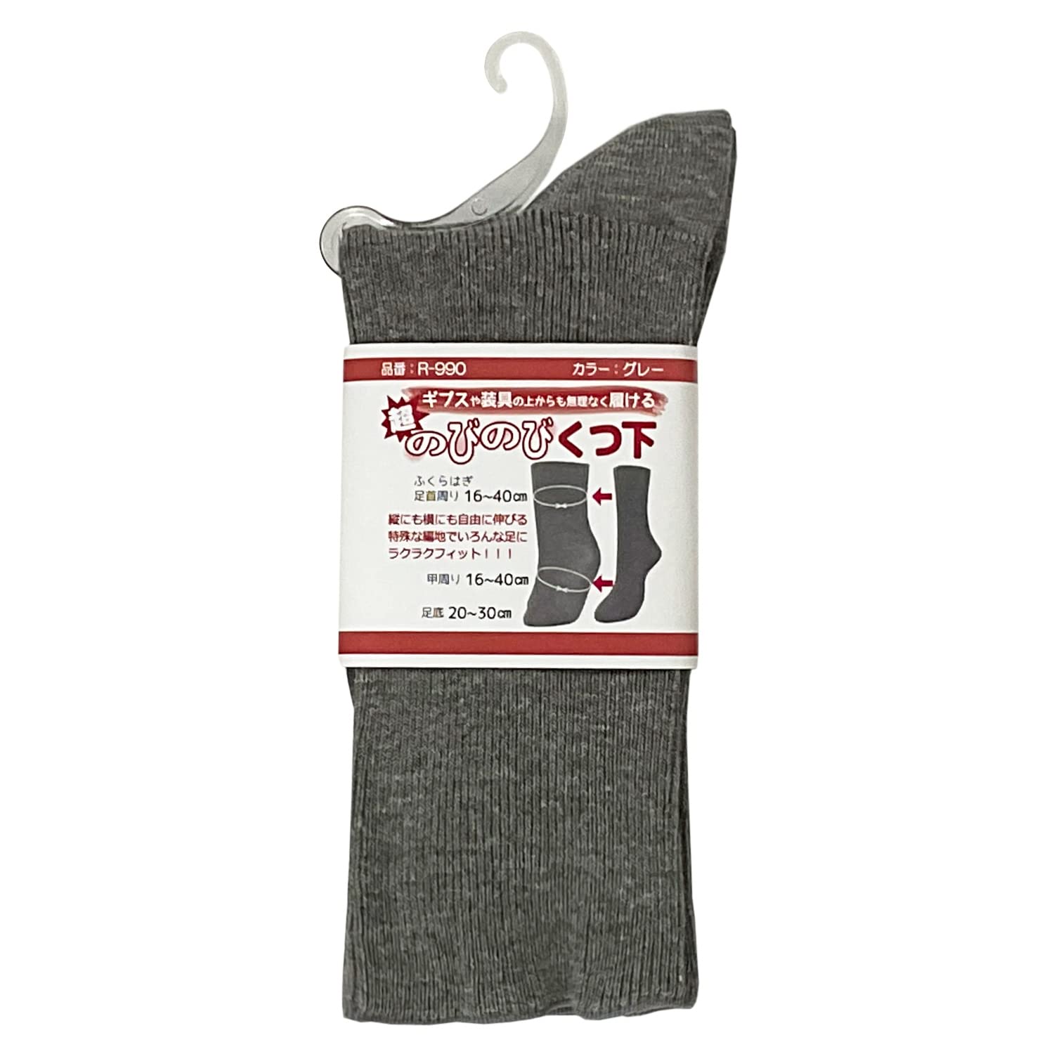 ギプスや装具の上からも無理なく履ける。縦にも横にも自由に伸びる。特殊な編地で締め付けることなく、いろんな足にらくらくフィット。ふくらはぎ、足首周り、甲周りは16cm~40cm! 足底も20cm~30cmと超のびのびサイズ! ! 丸洗い、乾燥機にも対応しています。