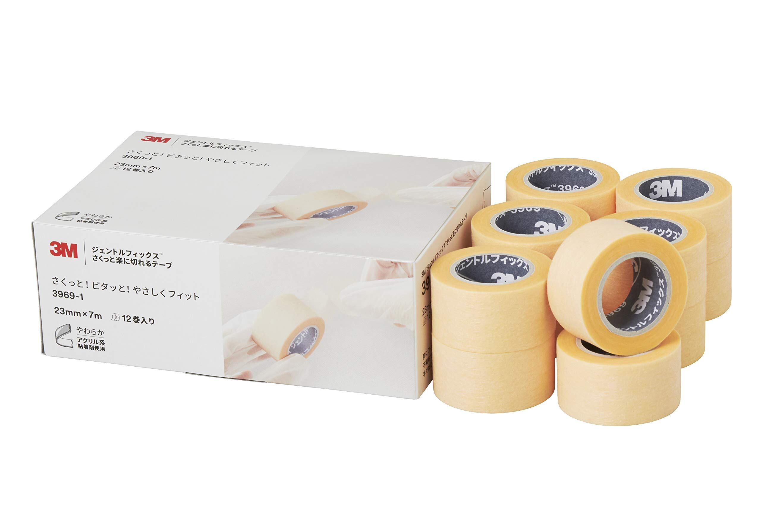 3M(TM) ジェントルフィックス(TM) さくっと楽に切れるテープ 3969-1 23mm×7m 12巻入 日本製 肌に優しい サージカルテープ 医療用テープ ラテックスフリー 角質剥離が少ない 剥がす時に痛みが少ない
