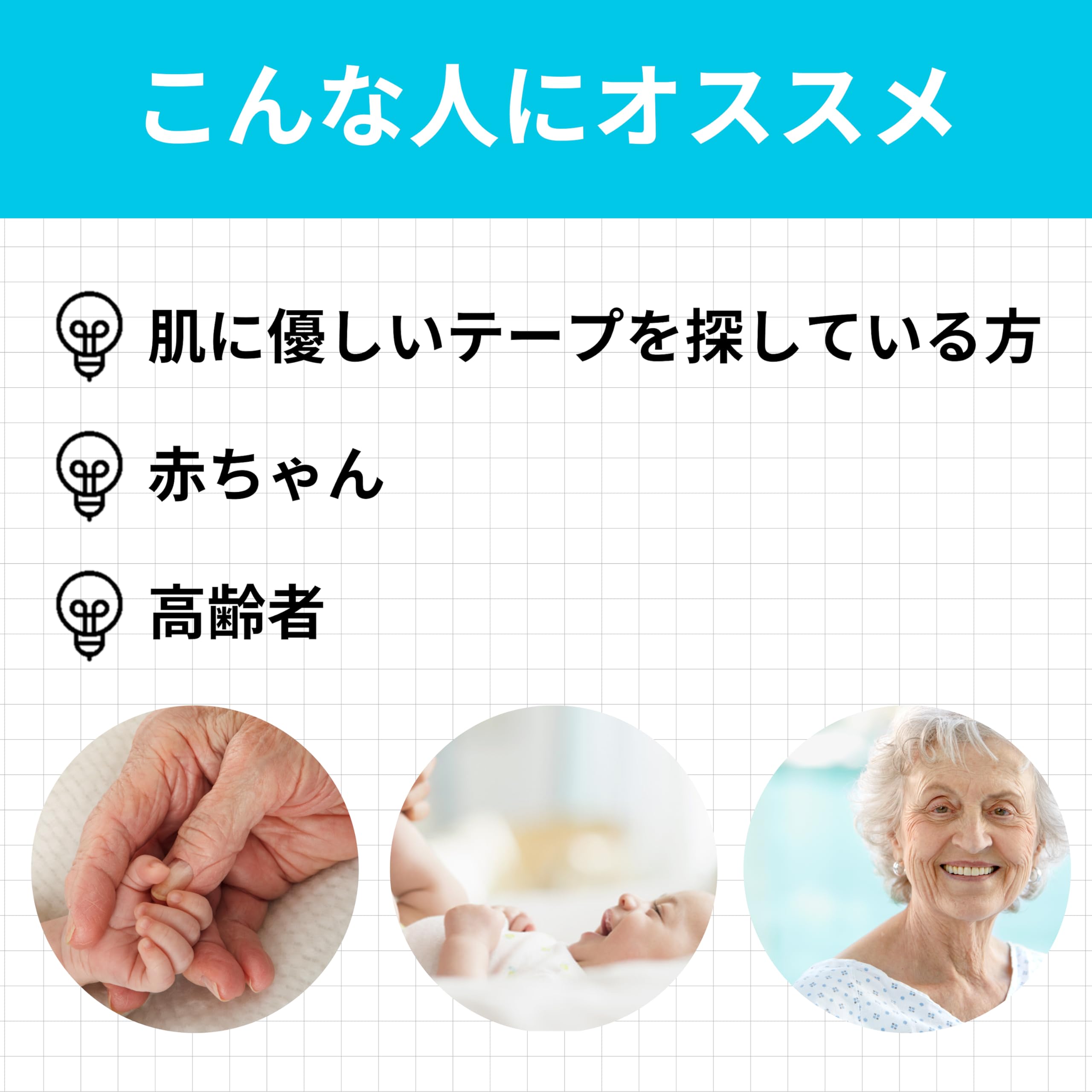 はがす時に角質剥離が少ないため皮膚を傷つけにくく、はがす時の痛みも軽減します