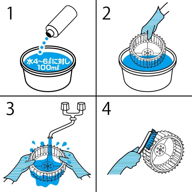 ◇用途 アルミ製のシロッコファンやアルミ素材のつけおき洗浄に。 ※フッ素コート加工・塗装面には使用できません。