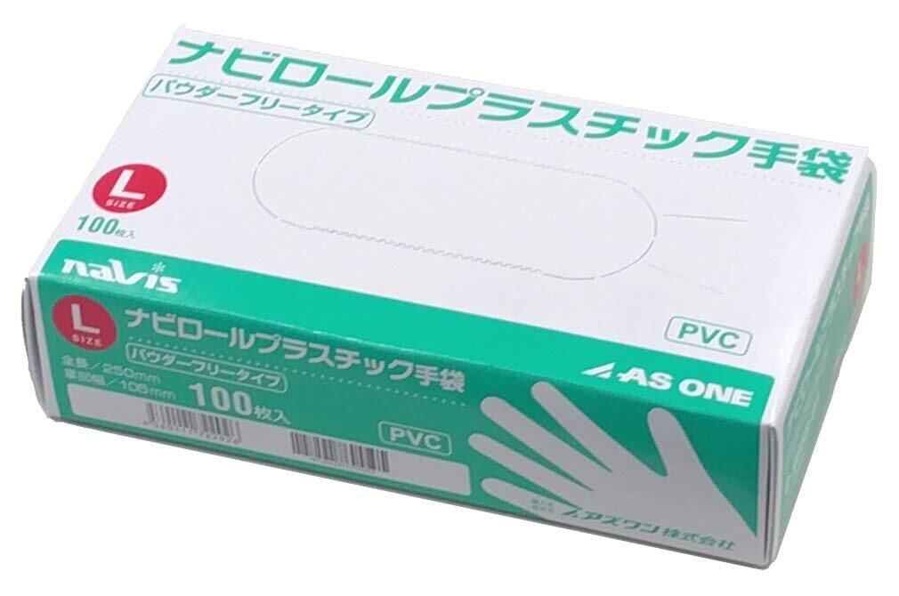 アズワン ナビロールプラスチック手袋(パウダーフリー) L 100枚入