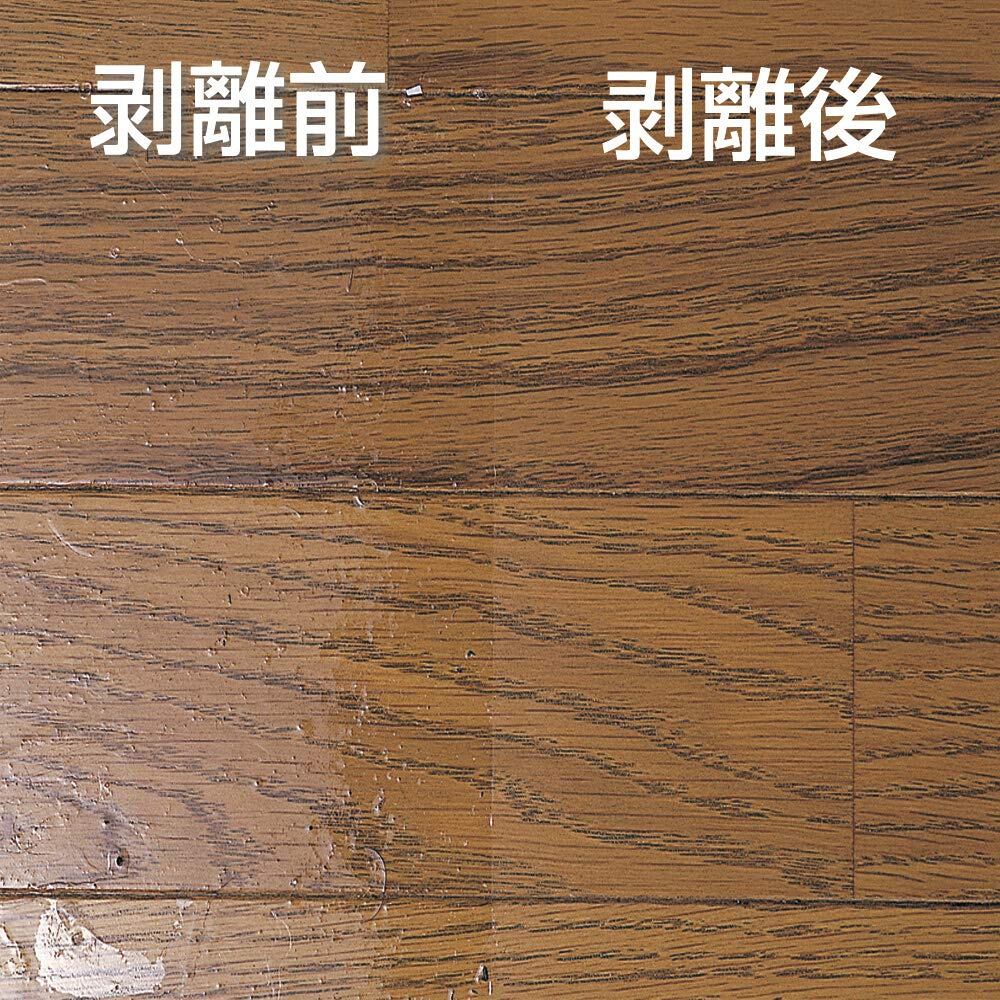 古いワックスをはがす強力剥離剤。くすみ・汚れの原因となる古いワックスをしっかり落とす。1本で約48畳分塗れる。薄めて使う原液タイプ。白木の床やニスを塗っていない木床には使用不可。