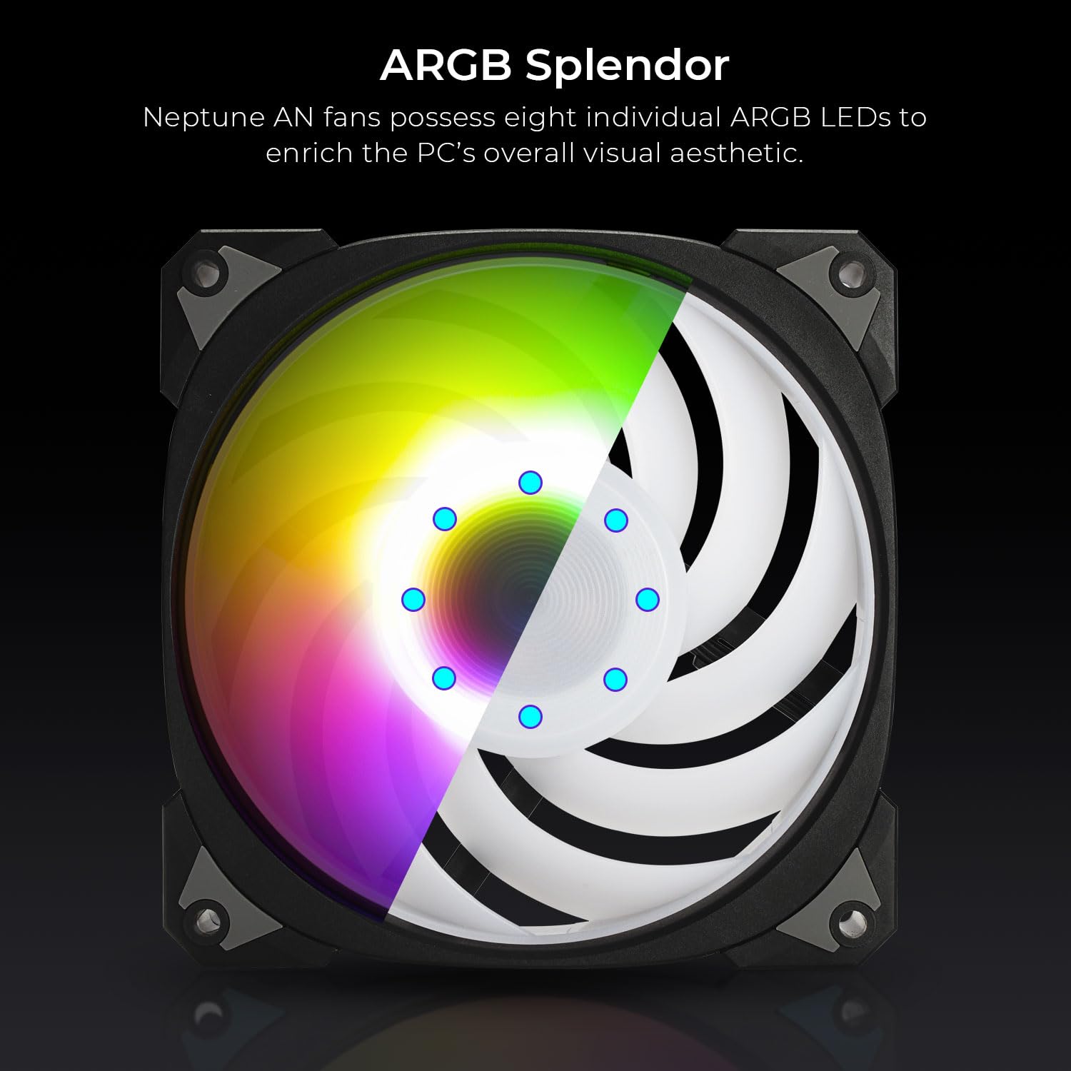 Neptune AN シリーズファンは、革新的なファンブレード設計で PC 冷却コンポーネントとして高い効果をもたらし、卓越した効率と静音環境を実現します。 8 つの個別の ARGB LED で PC の美しさを高め、魅惑的な視覚体験を作り出します。 Neptune AN シリーズファンにアップグレードすると、最高のパフォーマンス、スタイル、穏やかな雰囲気が得られます。