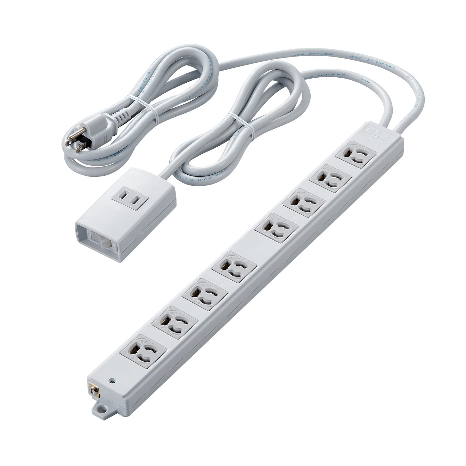プロジェクタや複合機、モニタなど3ピンプラグ仕様のOA機器をアダプタなしで接続することができる3ピンプラグ対応の8個口の電源タップです。