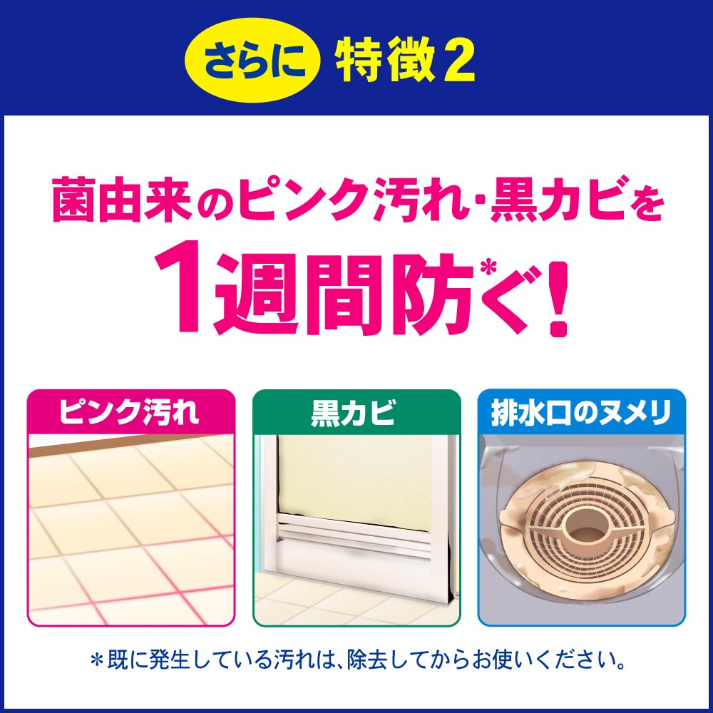 洗浄はもちろん、ピンク汚れ・黒カビを1週間防ぐ(※1)!浴そうの抗菌(※2)・ウイルス除去(※3)まで。