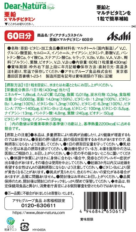 ディアナチュラスタイル 亜鉛×マルチビタミン 60粒(60日分)