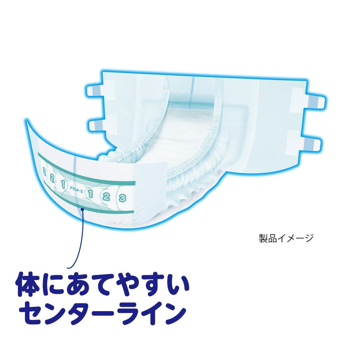 おむつの中心と体の中心を合わせやすい、「センターライン(中心線)」。