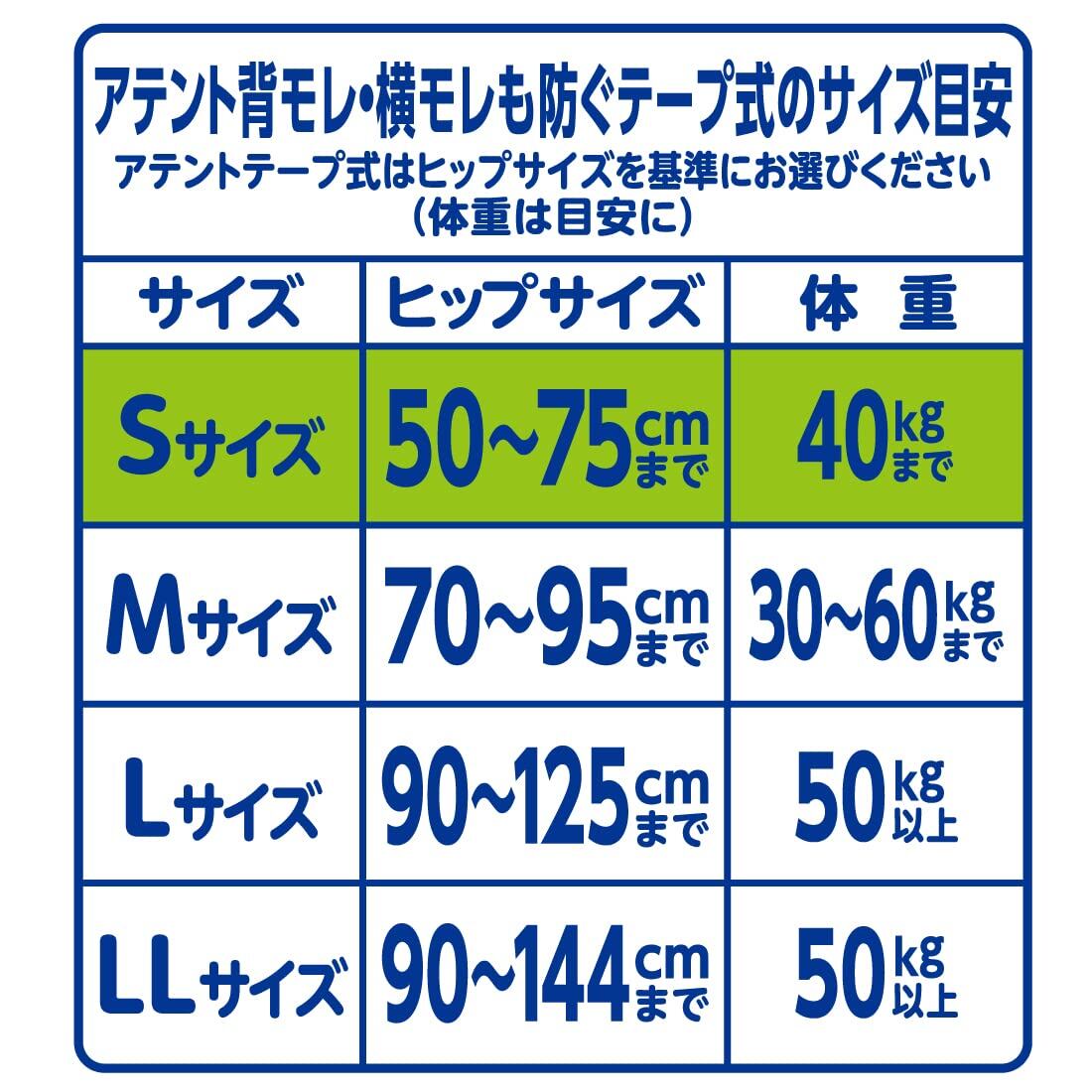 アテント テープ式 Sサイズ 消臭効果付き 背モレ・横モレも防ぐ 34枚【大容量】