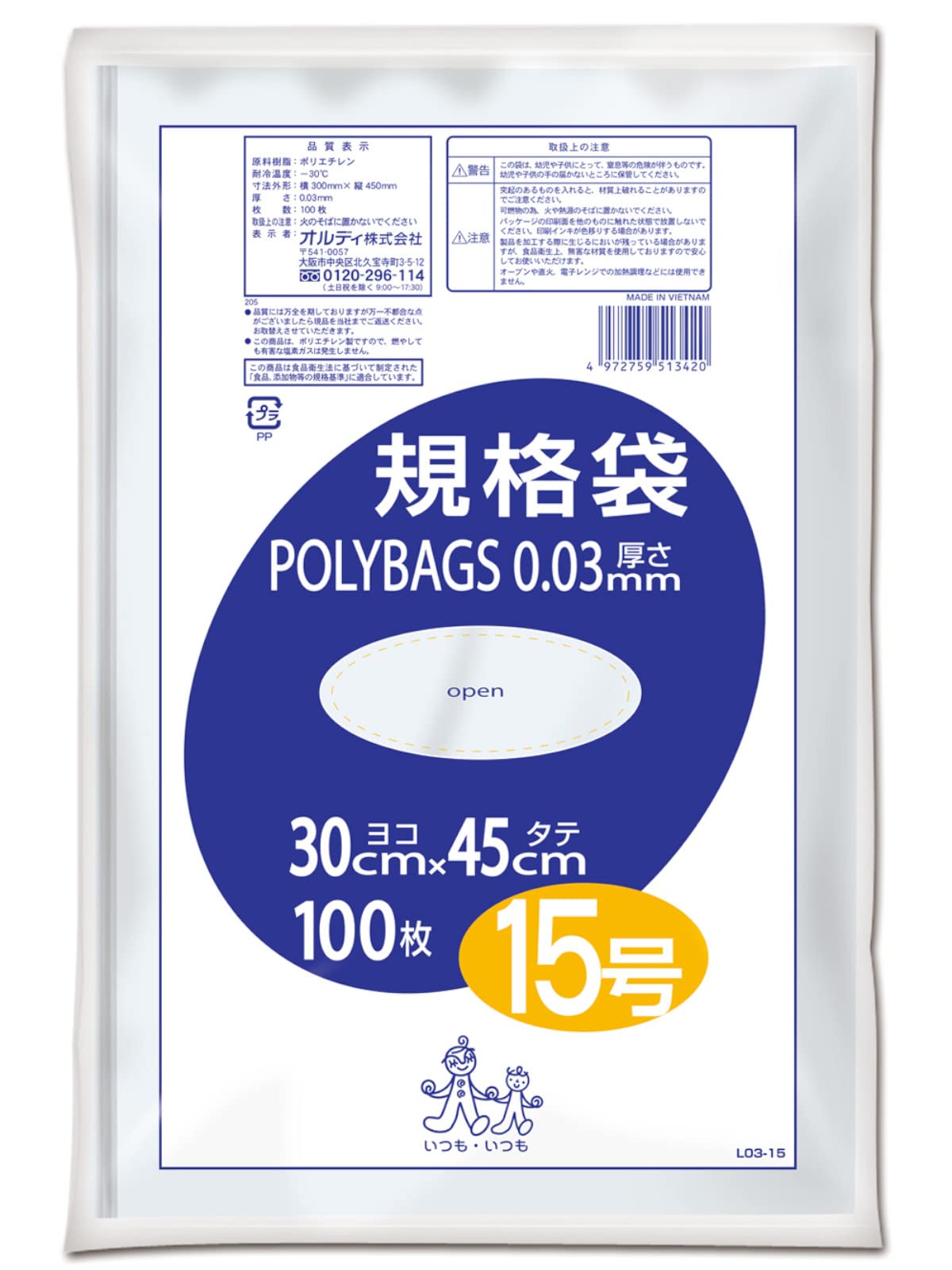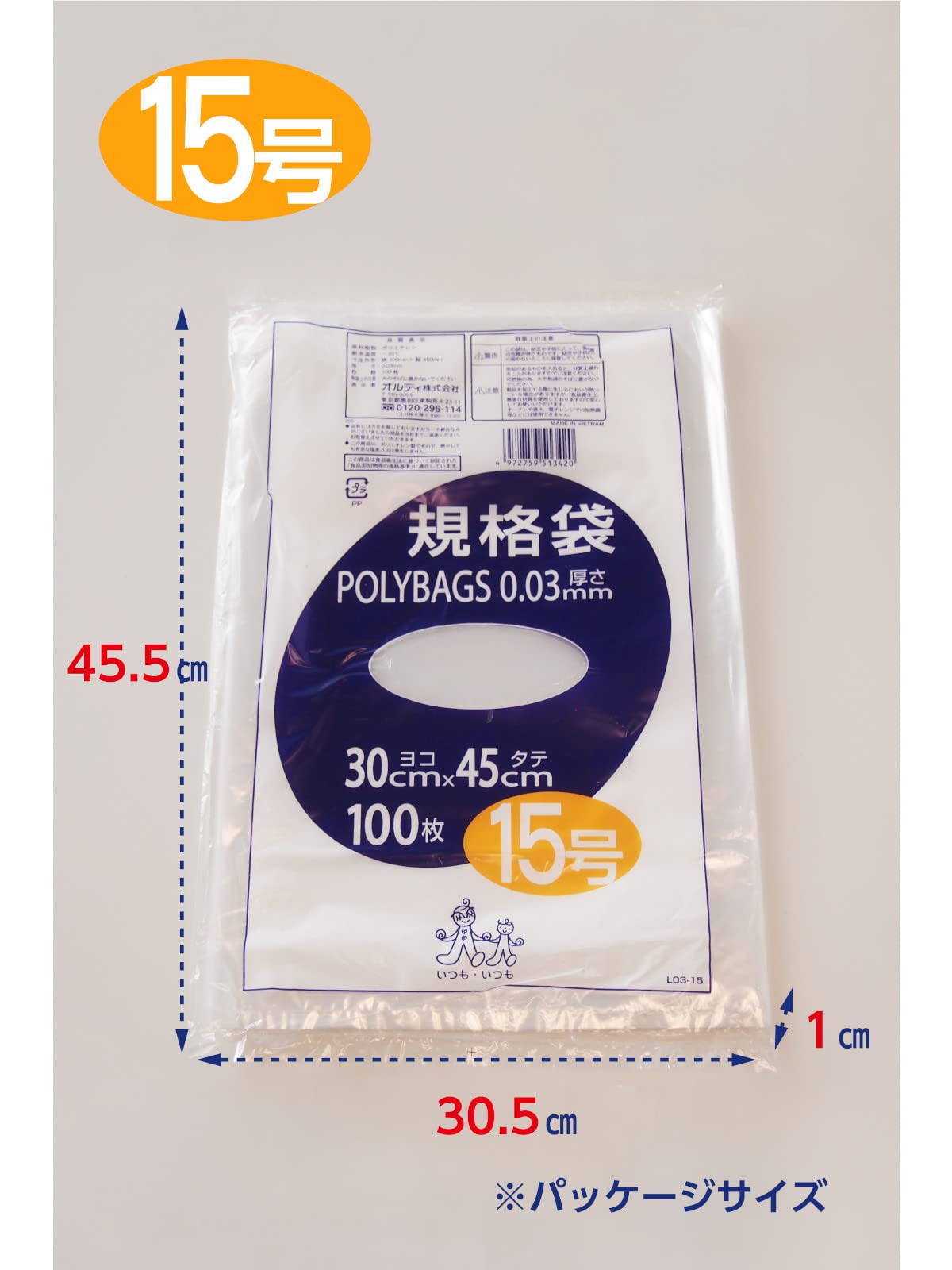 オルディ ポリバック規格袋 15号0.03mm100枚入
