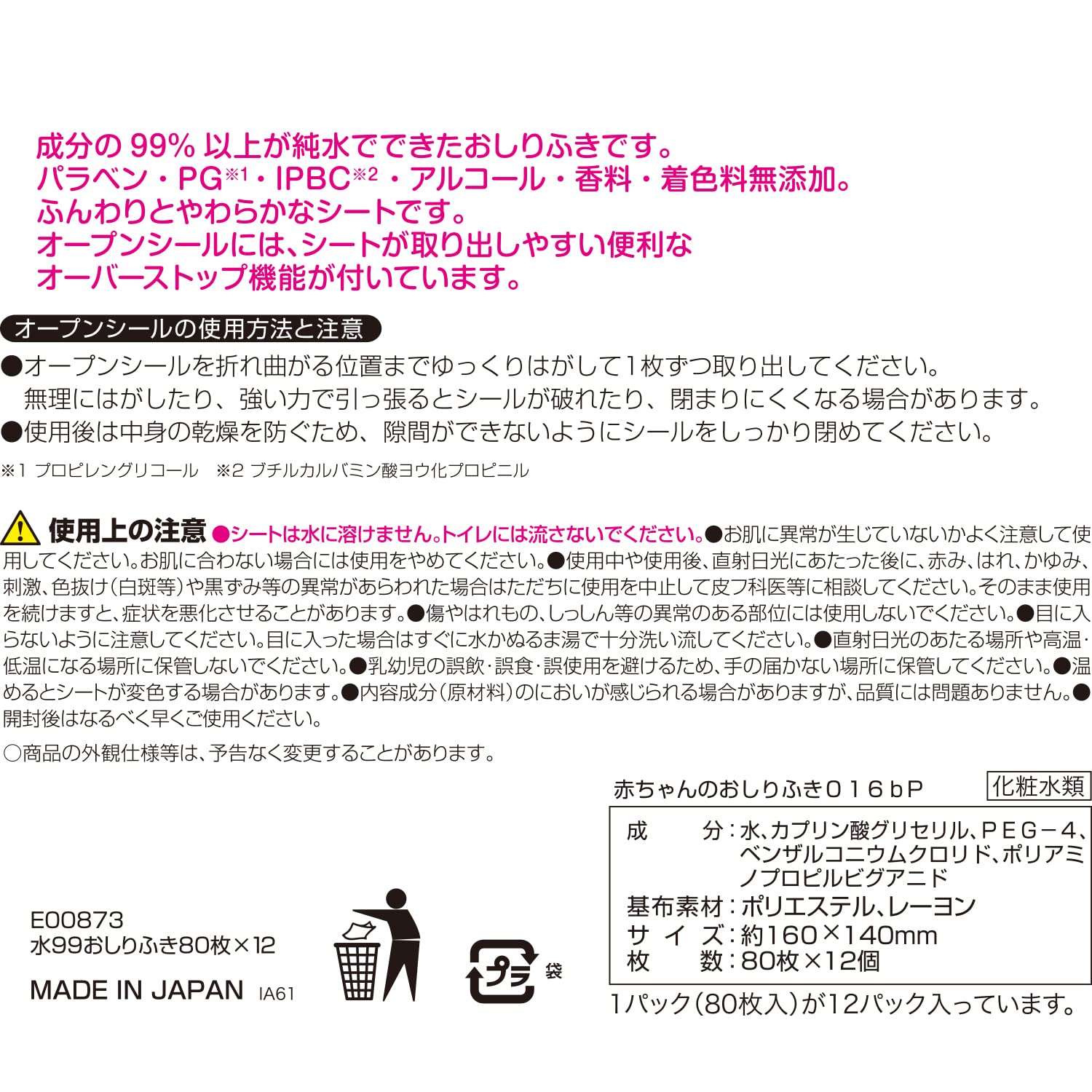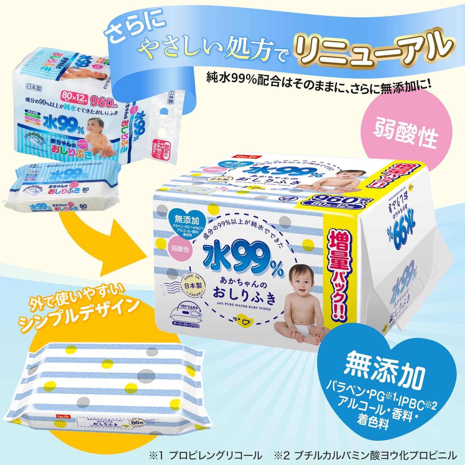 ●成分の99%以上が純水でできたおしりふきです。