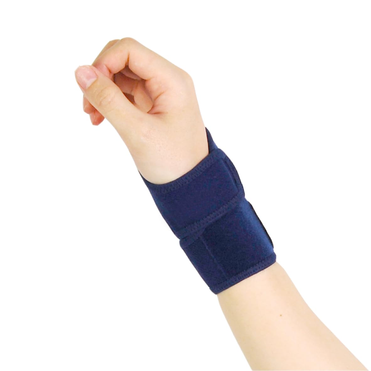 【手首廻り】 12-20cm 【幅】 10cm 【カラー】 ネイビー 【使用方法】 ※この商品は左右兼用です。 (1)肌側、上下をお確かめください。 ・商品タグの付いている方が外側です。 商品の丸穴を尺骨茎状突起(手首小指側の突起している部分)に合わせます。 (2)下部ベルトを接着します。 丸穴の位置がズレないように押さえながら、下部ベルトを手のひら側を通して適度な力で手の甲側に引っぱり、面ファスナーで固定します。(商品タグと丸穴を覆うように接着します。) (3)上部ベルトを接着します。 丸穴の位置がずれないように押さえながら、上部ベルトを手のひら側を通して適度な力で手の甲側に引っぱり、面ファスナーで固定します。 (4)装着状態を確認してください。 丸穴がしっかり突起部分に位置するように、調整してください。