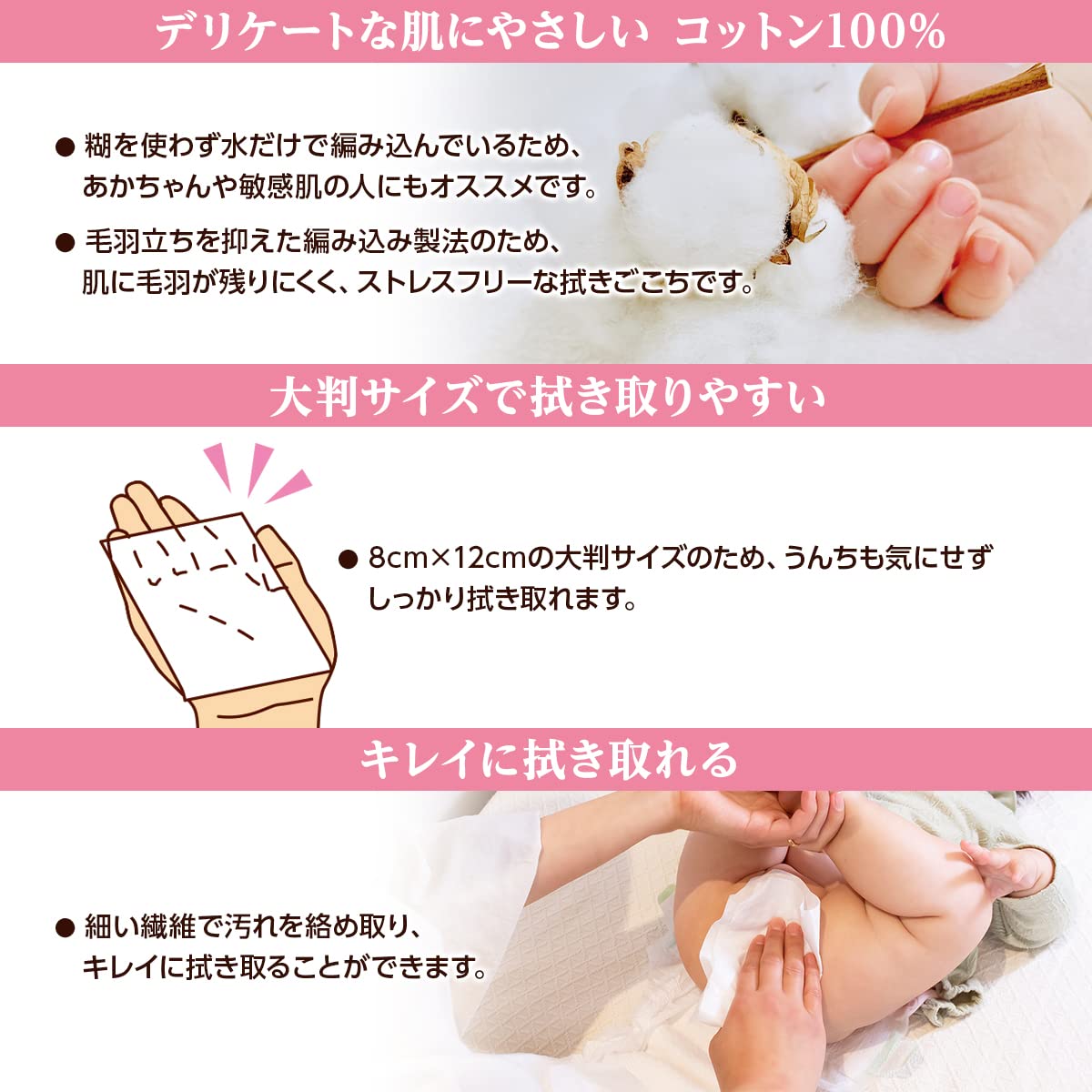 敏感肌のあかちゃんにもやさしいおしりふきコットン