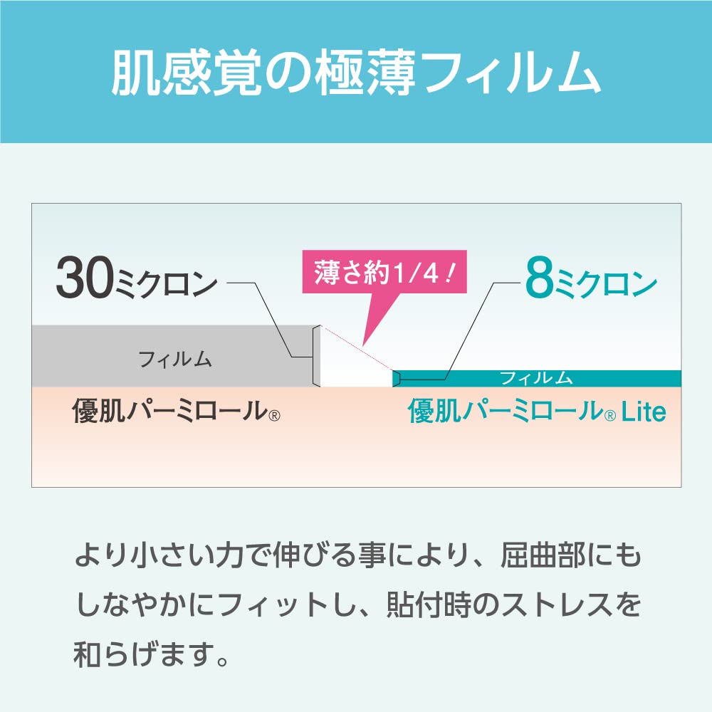 【しっかり防水】 ・極薄8ミクロンのフィルムが肌にぴったり密着するので、はがれにくくしっかり防水できます。