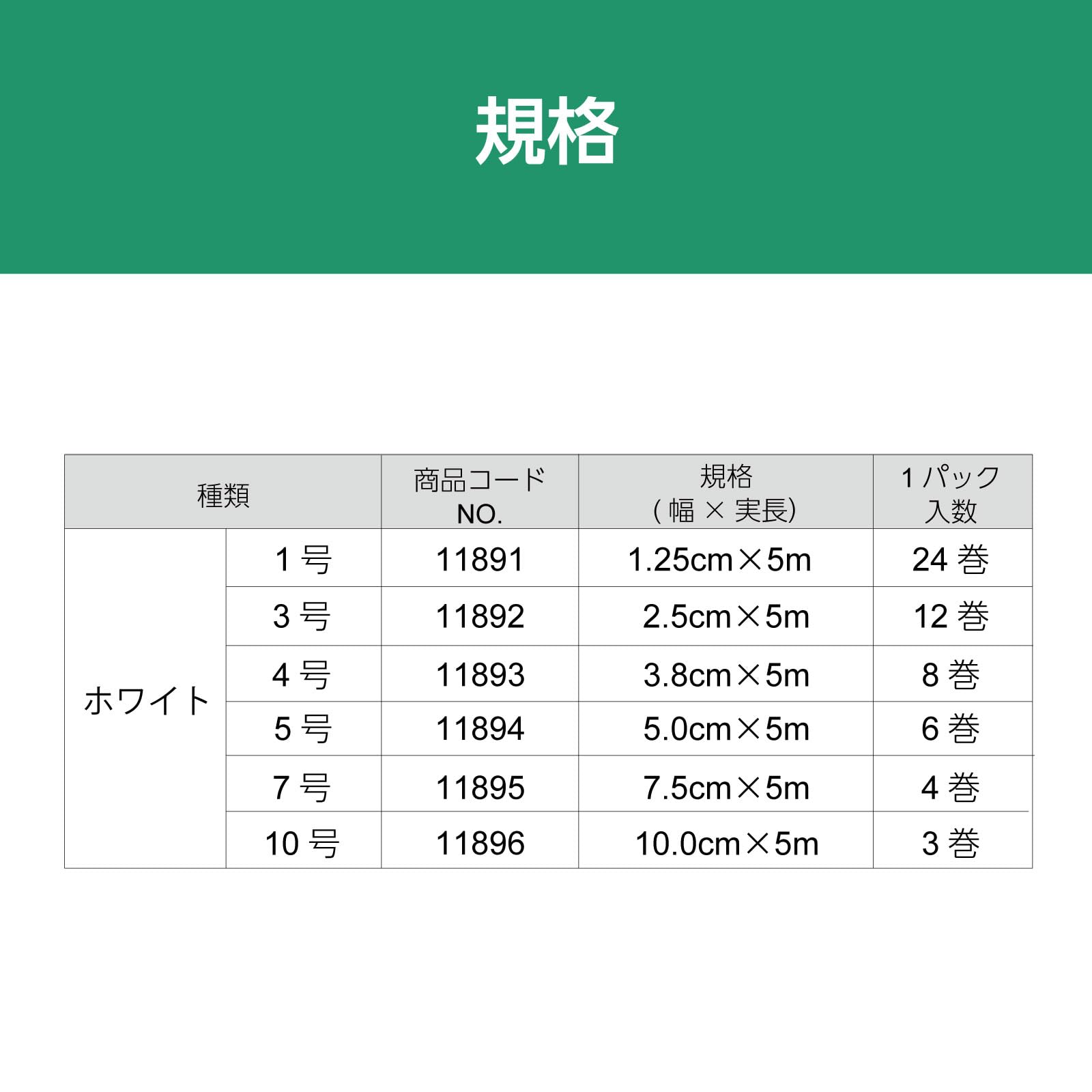 ●色:ホワイト●幅×実長:50.0mm×5m●入数:1パック(6巻入)●種類:5号