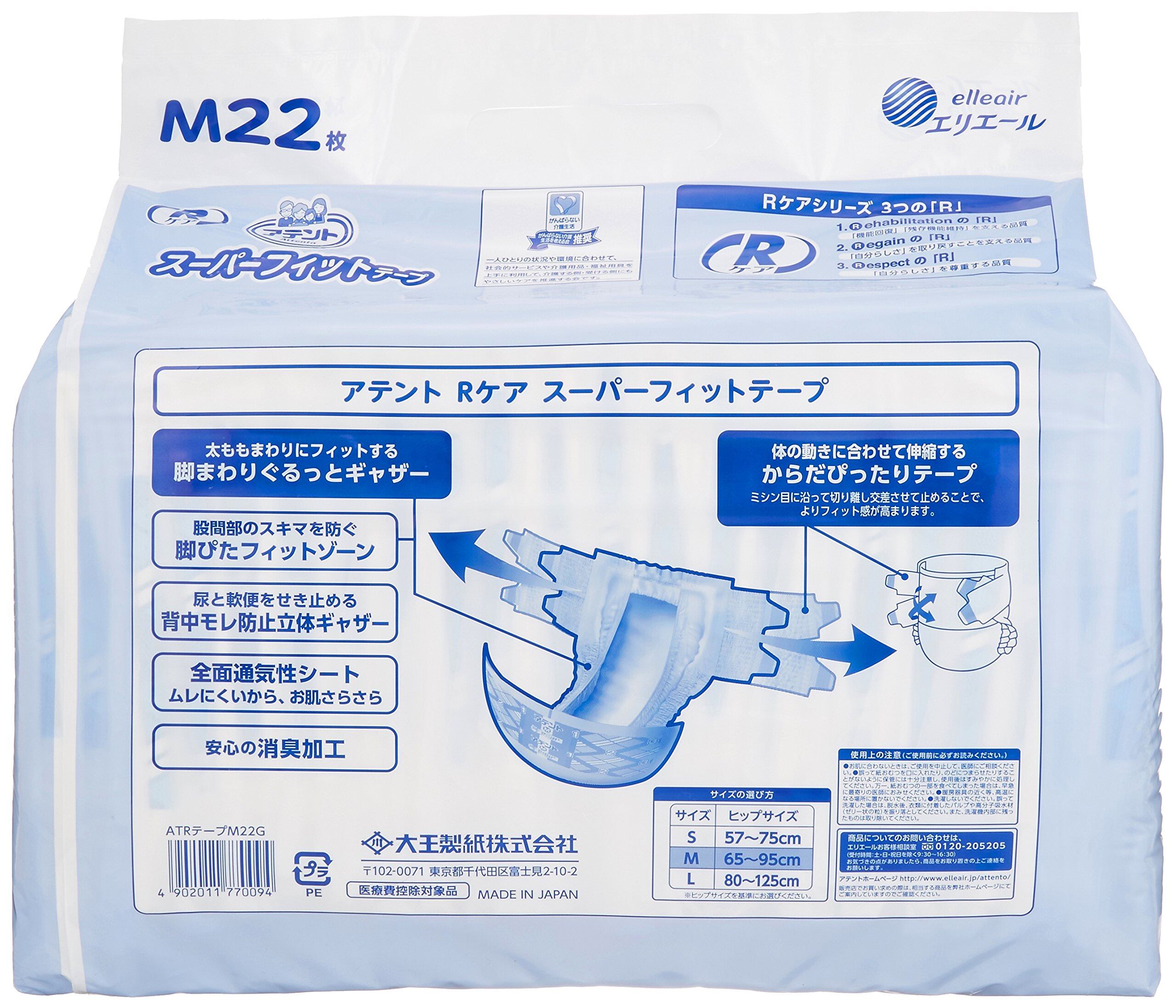 アテント Rケア スーパーフィットテープ M 22枚 【寝て過ごす事が多い方】【病院・施設用】