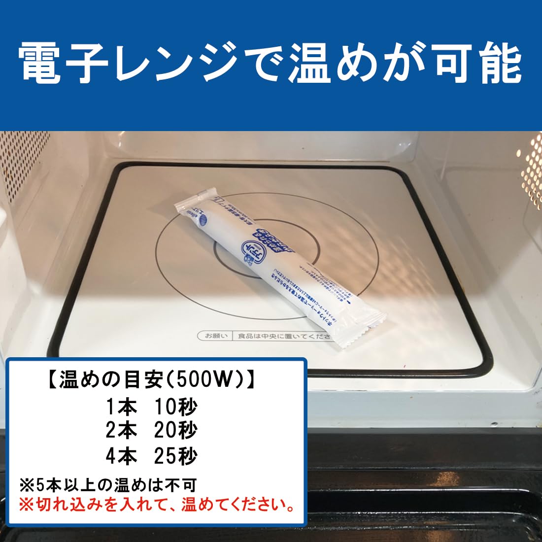 ●個包装タイプで、ホットキャビンや電子レンジでの温めが可能です。(目安:電子レンジで500Wで1本10秒、ホットキャビンでは55~60℃を目安に温めてください)