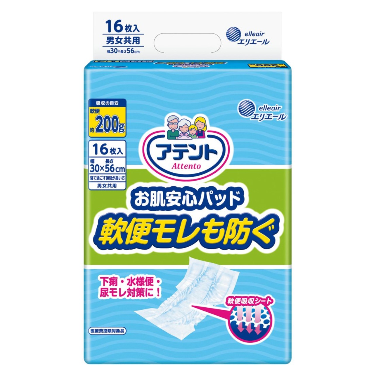 アテント お肌安心パッド 軟便もれも防ぐ 16枚 30×56cm テープ式用 【寝て過ごす事が多い方】